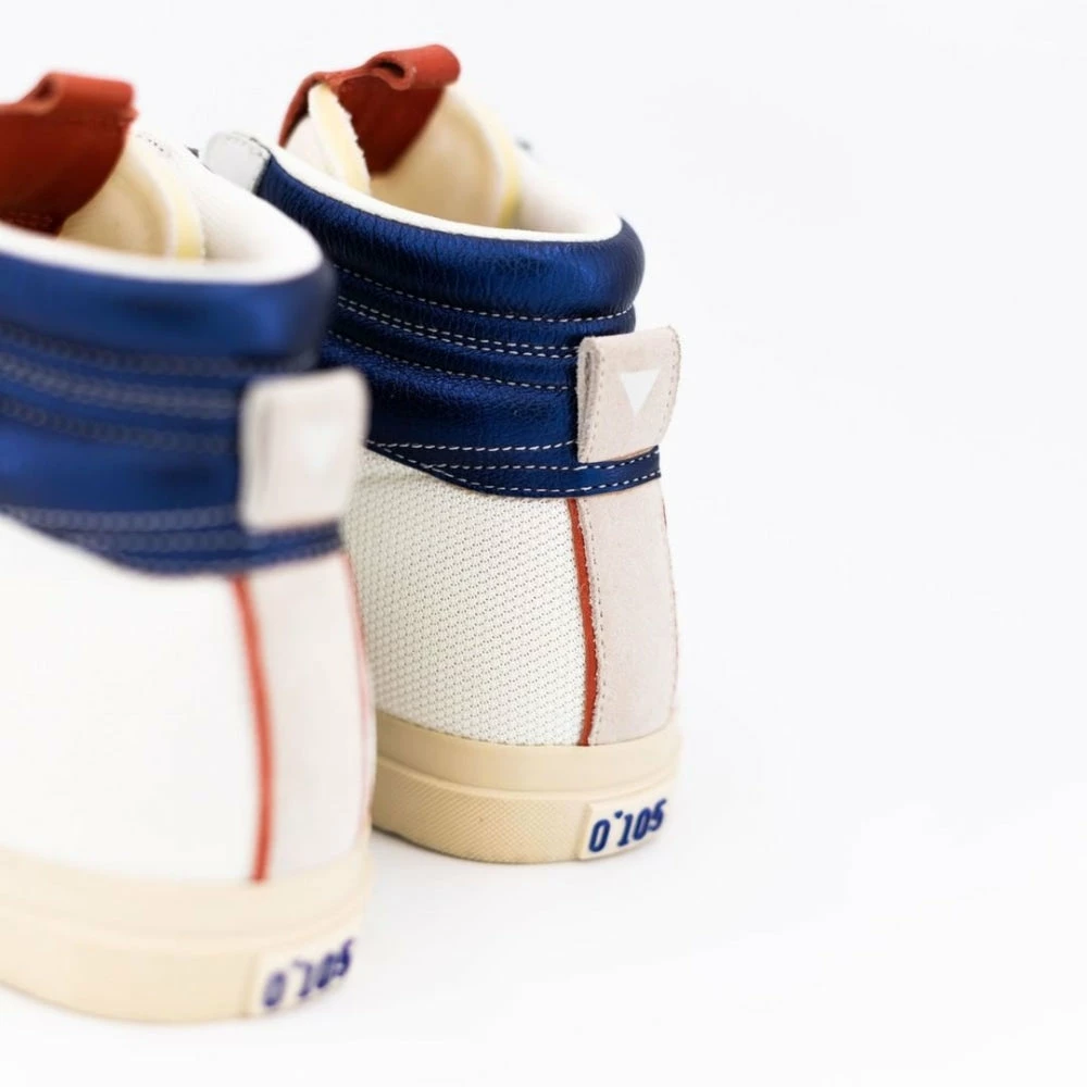 These high-top vintage-inspired sneakers perfectly combine retro American influence and modernity. Raw jeans, white shirt and we are back to 40 years ago.