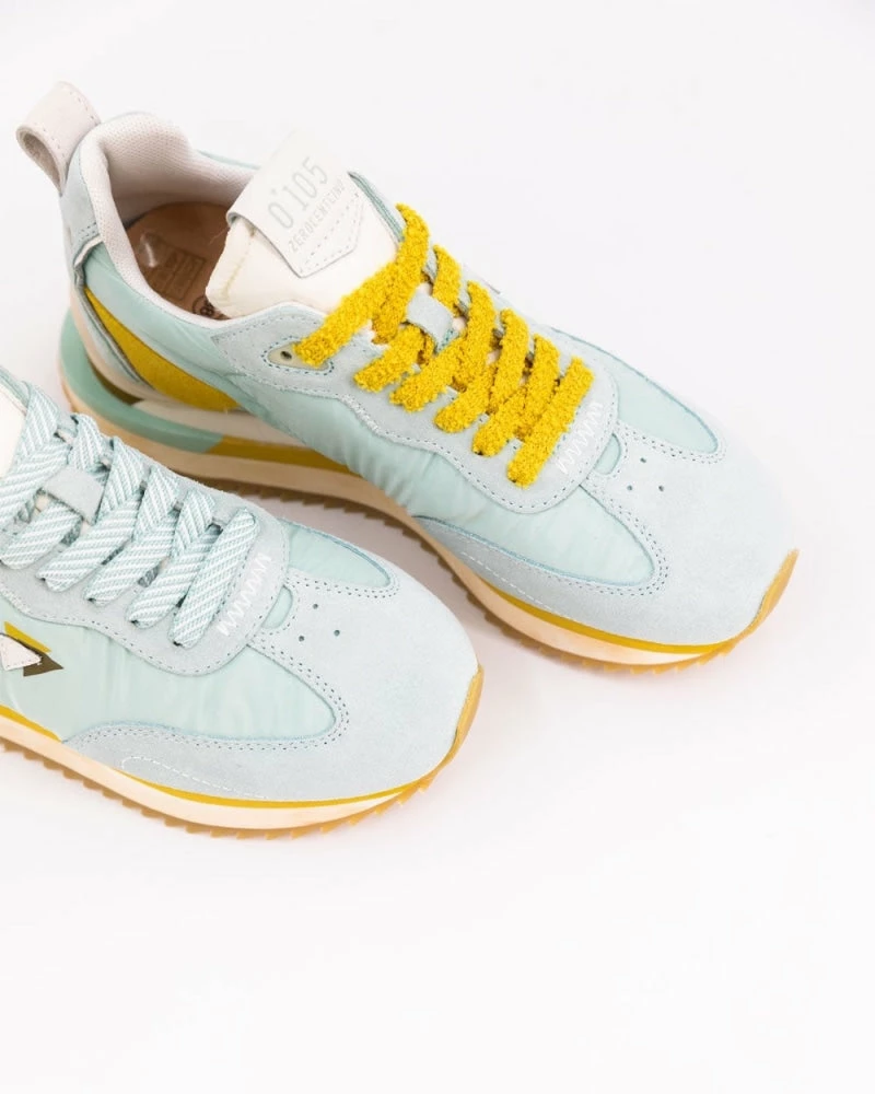 | Brand Model Product number Category Color Material Lining Sole Closure | 0-105 ZEROCENTCINQ Lenox LENOXMINT Sneakers Mint Suede Leather / Nylon Leather and Textile Multilayers, 100% Eva. Laces ( 2 sets of laces ) |