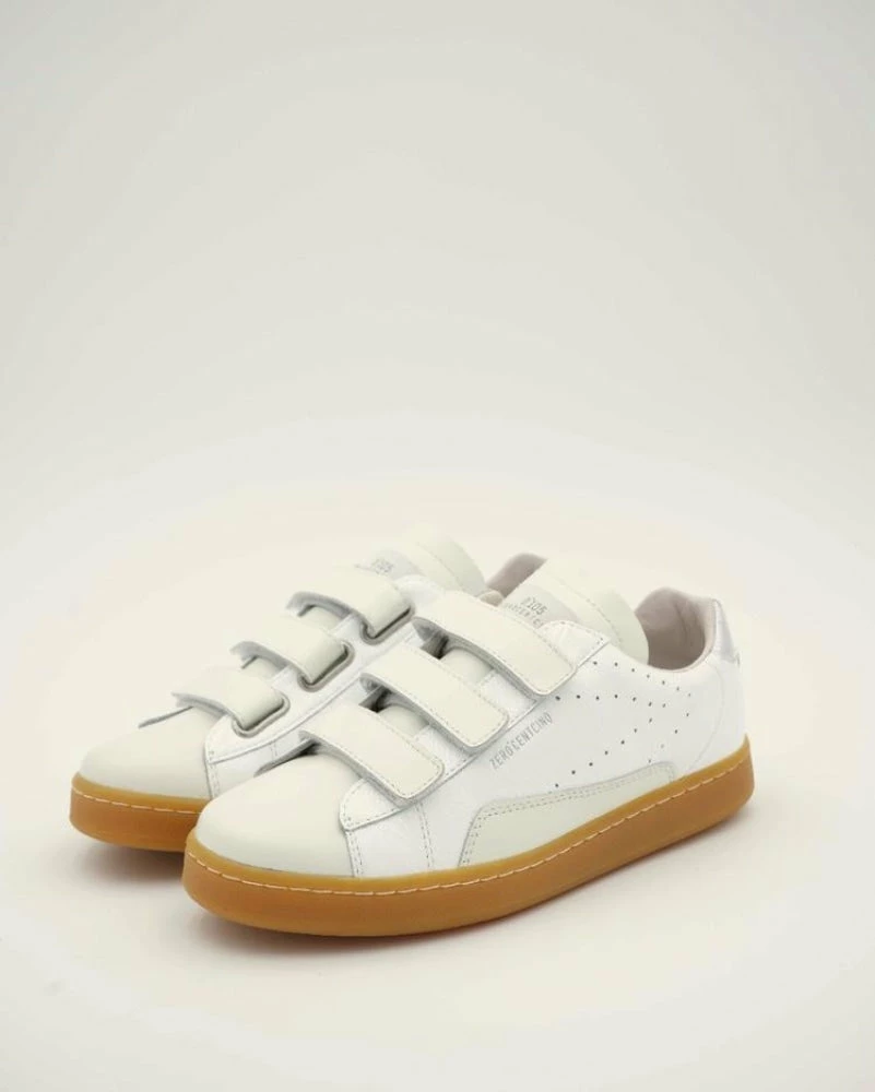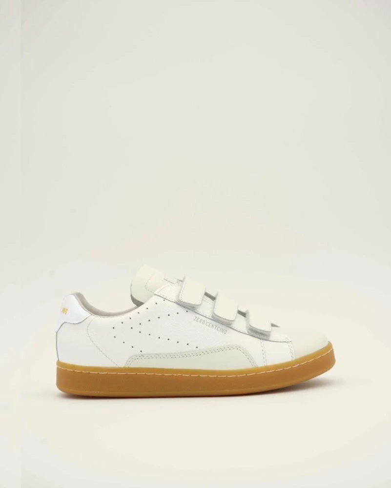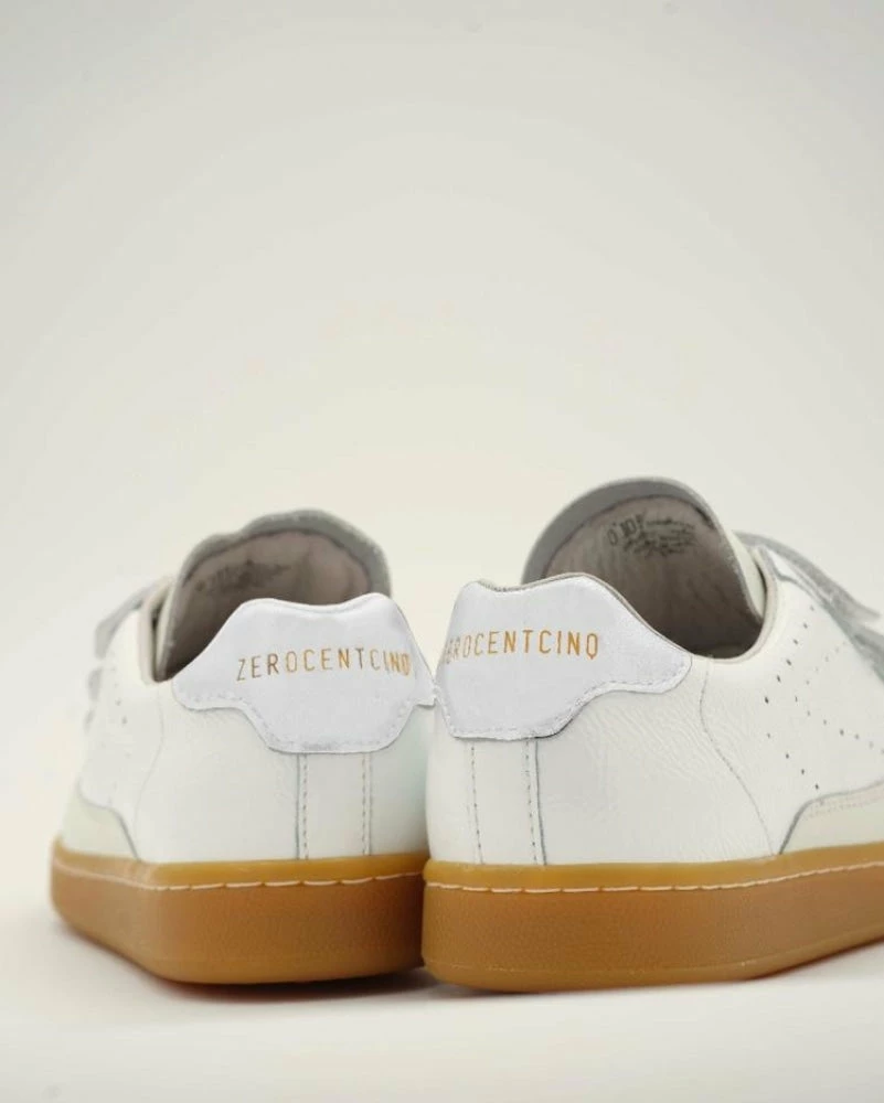 | Brand Model Product number Category Color Material Lining Sole Closure | 0-105 ZEROCENTCINQ S-Scratch White Polish S-SCRATCH Sneakers White Leather Leather / PL 100% Rubber Straps |