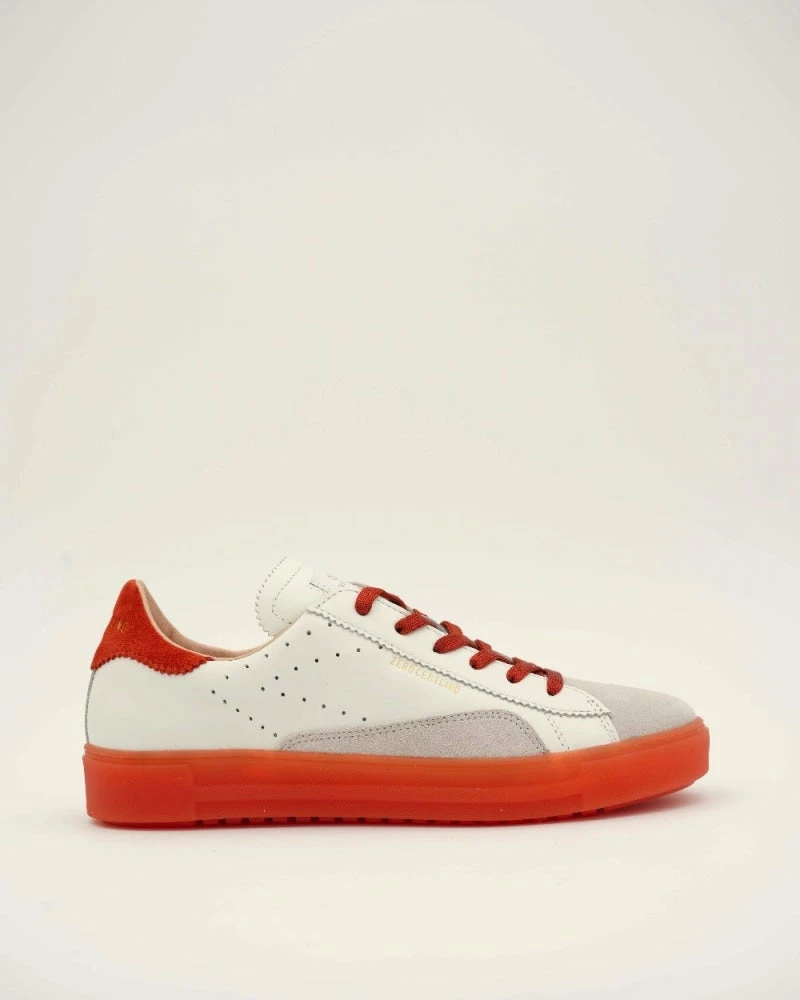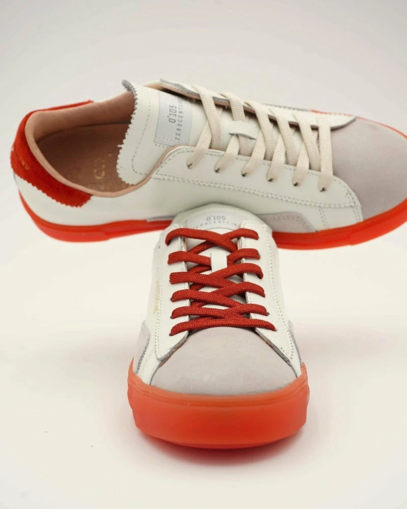 | Brand Model Product number Category Colour Material Lining Sole Closure | 0-105 ZEROCENTCINQ SC02JELLY NOVACLASSIC2 Sneakers White / Red Leather / Suede Leather / PL 100% Rubber Laces ( 2 sets of laces ) |