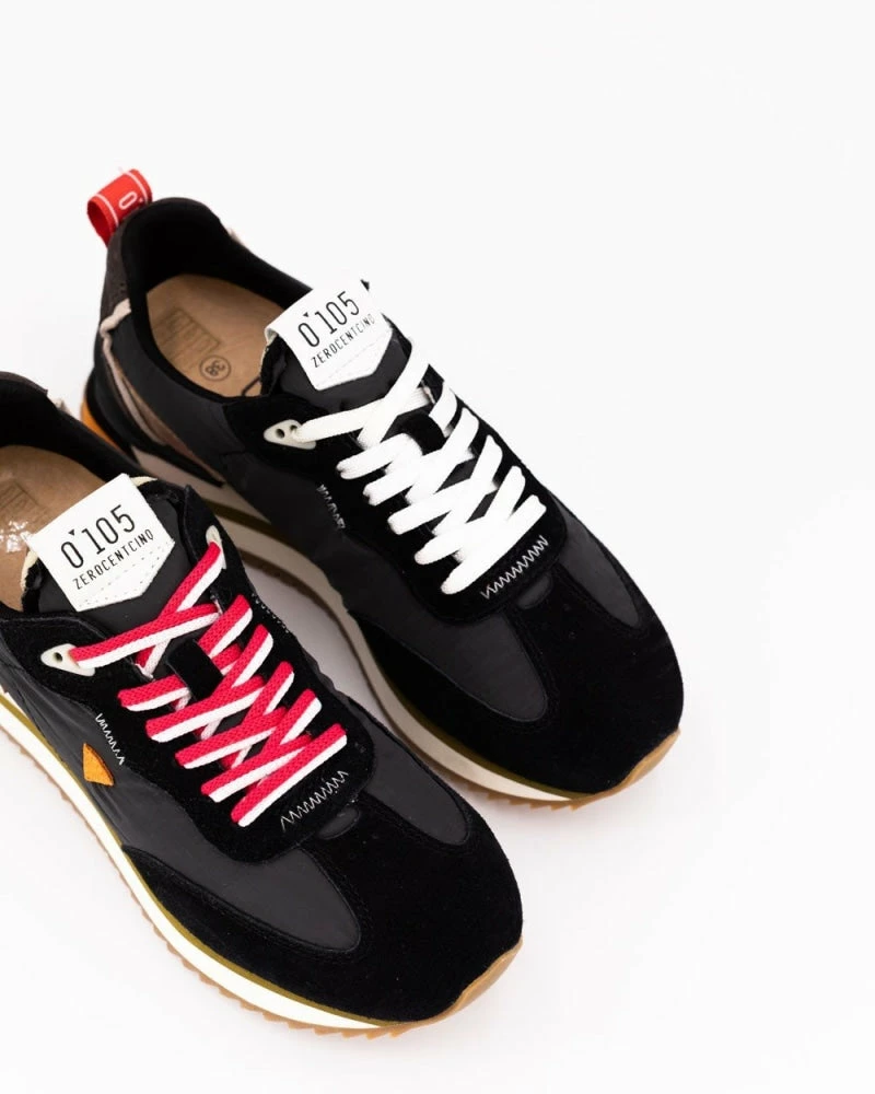 | Brand Model Product number Category Color Material Lining Sole Closure | 0-105 ZEROCENTCINQ Lenox H1LENOXCARBON Sneakers Black Suede Leather / Nylon Leather and Textile Multilayers, 100% Eva. Laces ( 2 sets of laces ) |