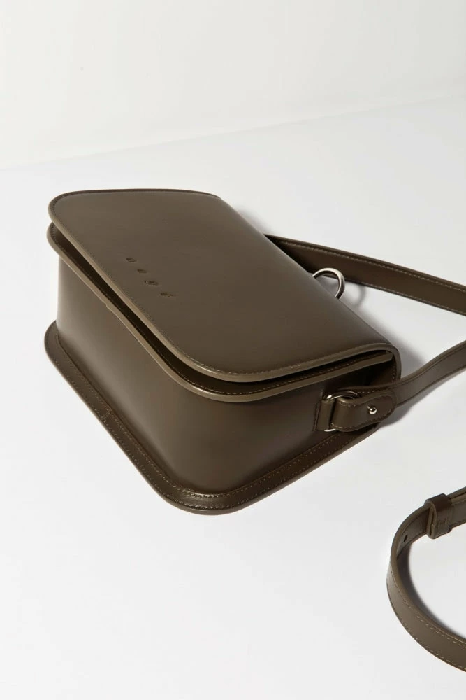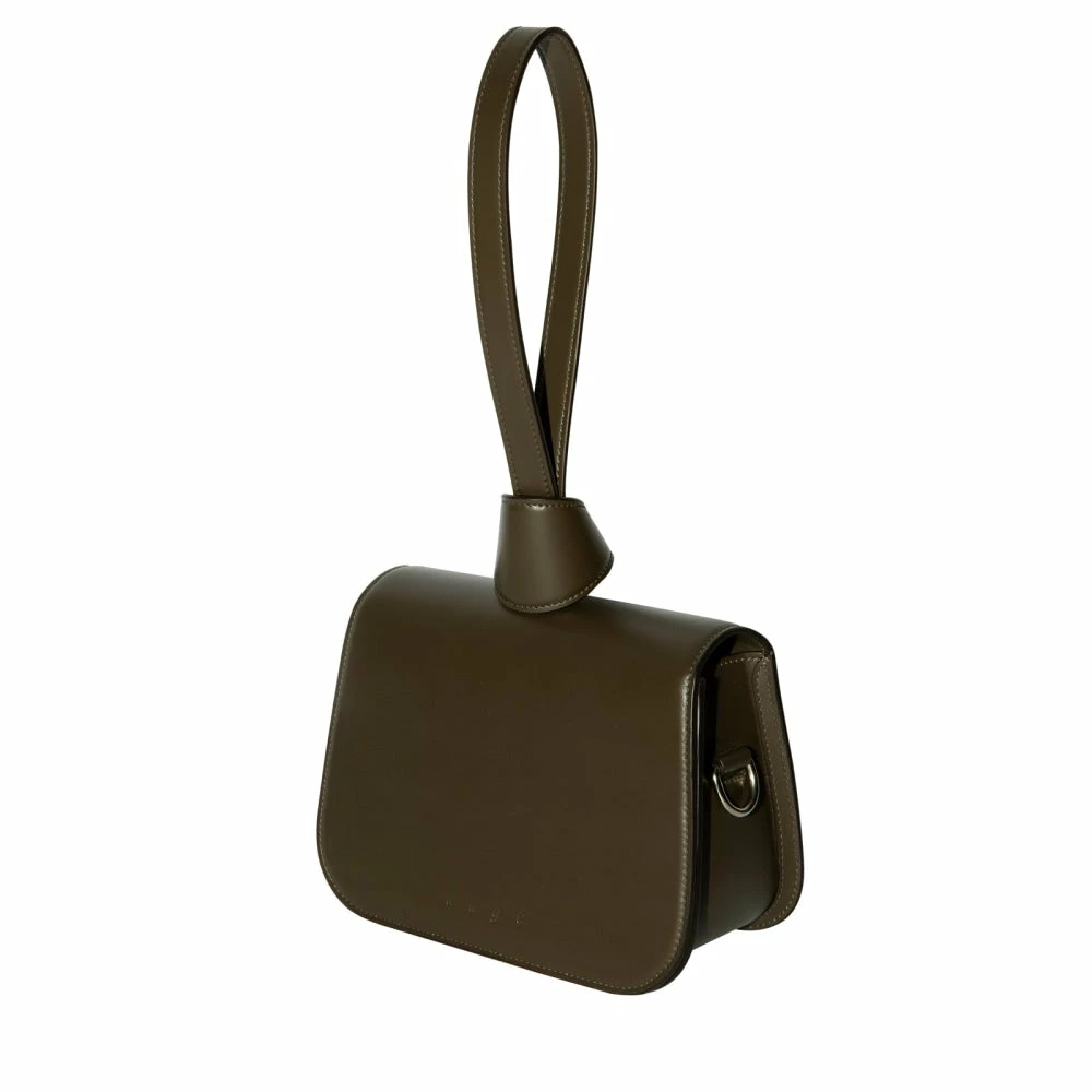 AAGÉ Hand-Bag 30-01-050 Bags Khaki Leather H 14,5 cm, W 19 cm D(bottom) 8 cm, D(top) 6 cm. Maximum length 110 cm. |