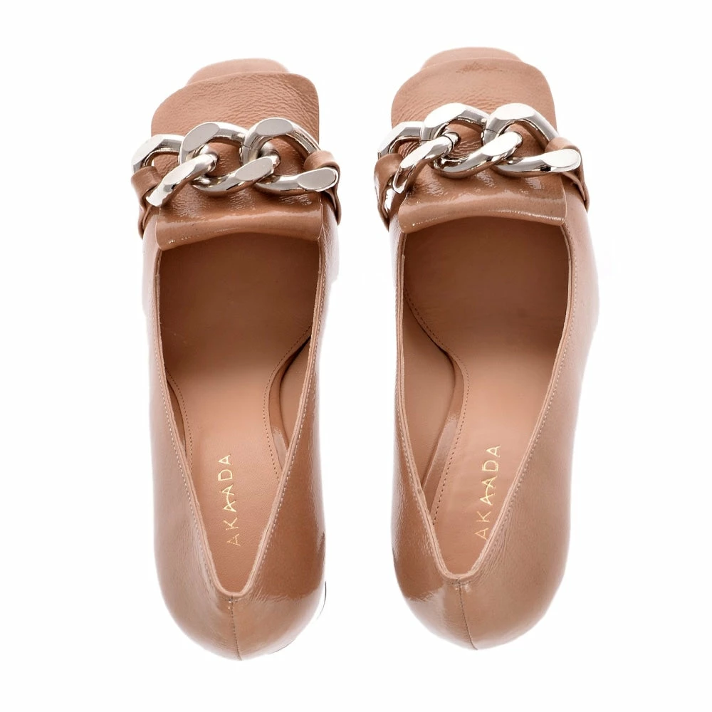 These trendy and lavish pumps from Akaada are created to upgrade your wardrobe. These super stylish pumps are made with 100% genuine naplak leather for the women who live life on their terms. The comfortable block heel allows you wear them all day long. The round toe looks super stylish and beautiful, The nickel chain embellishment on the front is something no one can avoid looking. These shoes are a perfect addition to your shoe wardrobe if you prefer elegance and sophistication with style and comfort. The insole is highly comfortable and the outsole is super strong owing to its high quality material.