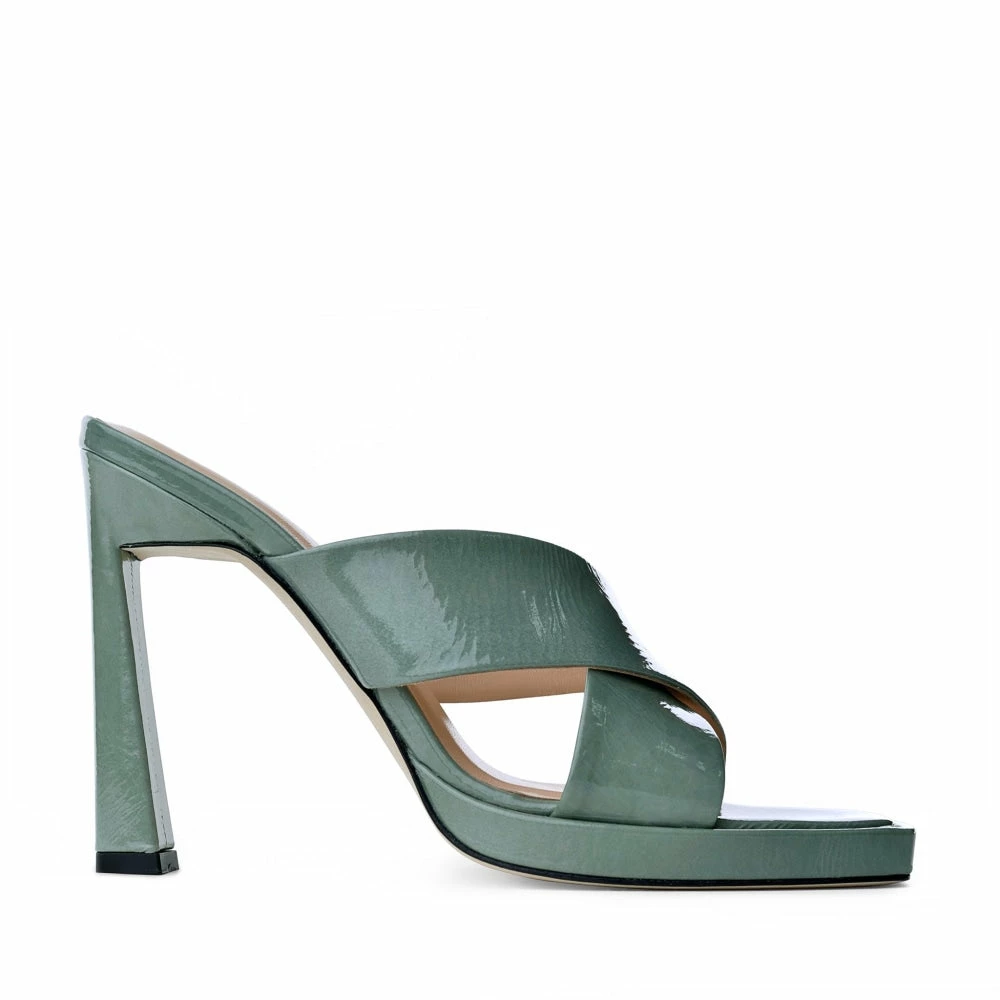 | Brand Model Product number Category Colour Material Lining Insole Outsole Heel Height Made in | AKAADA Kaori Plateau 20079-01- 04 Mules Avocado Green Soft Naplak Leather 100% Italia Goat Leather 100% Soft Leather Leather sole 12 cm / 4.72 inches EU |