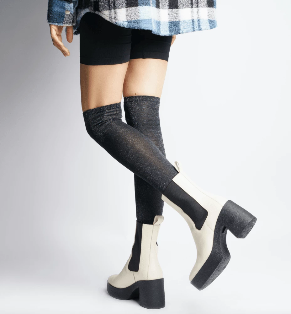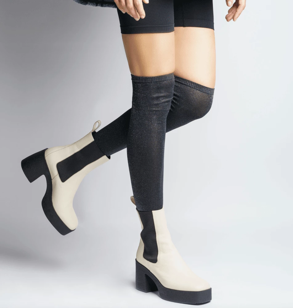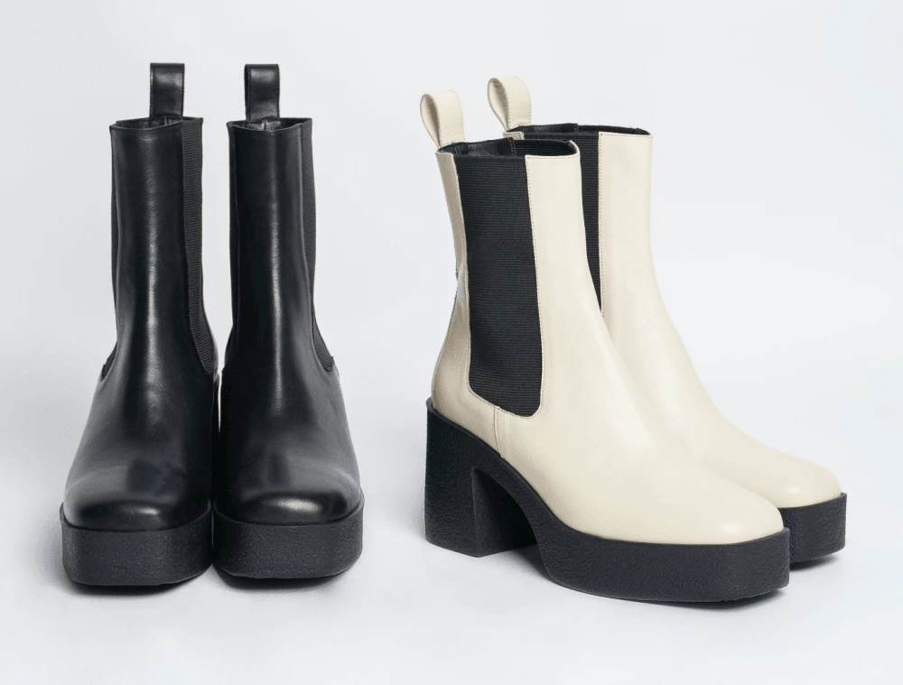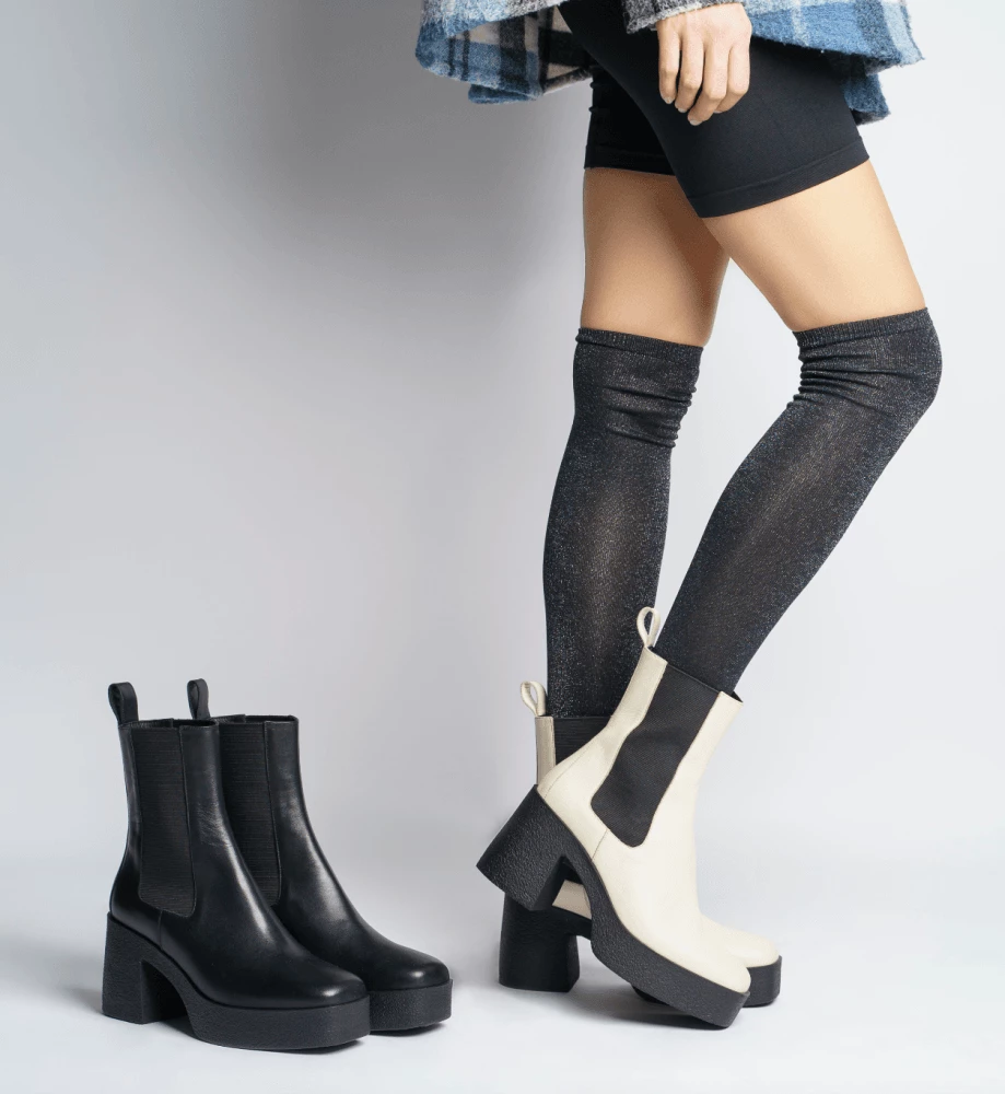 | Brand Model Product number Category Colour Material Lining Insole Outsole Heel Height Made in | AKAADA Momo 20077-04-02 Chelsea Boots Off White Soft Nappa Leather 100% Leather 100% Leather Rubber platform 8.5 cm EU |