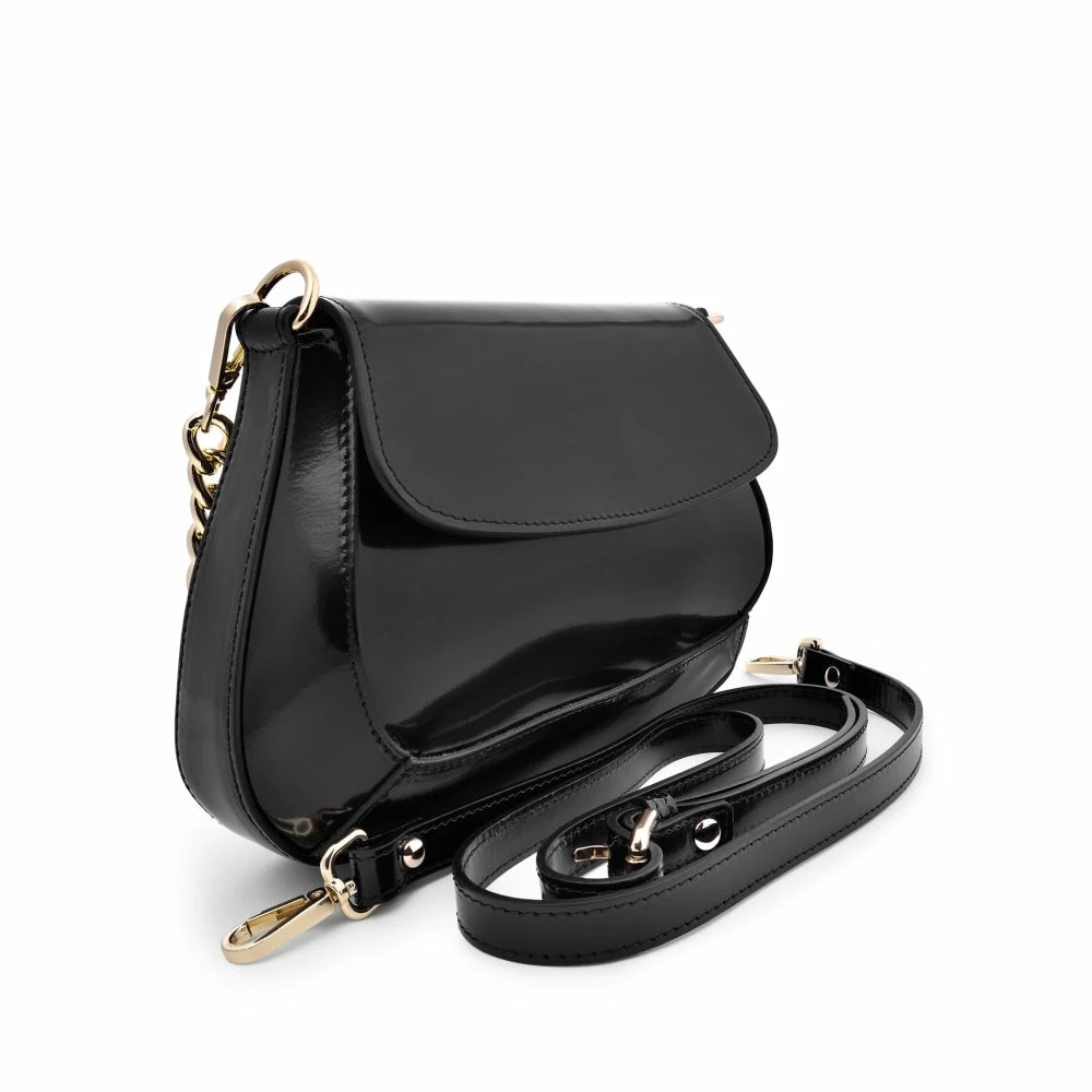 AKAADA Ena CL10534 NERO Bags Black 100% Semi-Patent Calf Leather Depth 4cm, Height 17cm, Width 25cm Handle drop 21cm, Strap Length 47cm Shoulder strap 105cm 100% Calf Leather Italy |