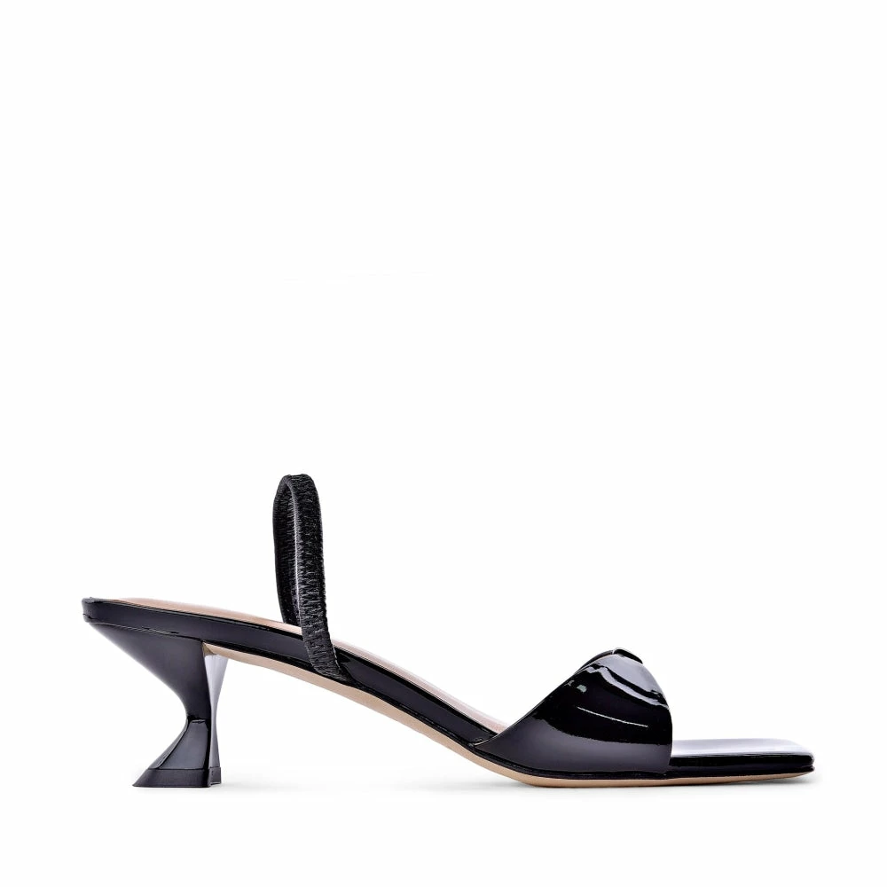 Handmade with 100% genuine Italian patent calf leather that brings the rich and luxe gloss to the sandals. The medium heel of 6 cm/2.36 inches is not as small as a kitten heel and not as long as a stiletto. The 100% authentic Italian soft leather insole gives maximum comfort to your feet.
