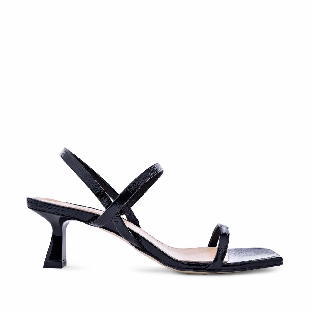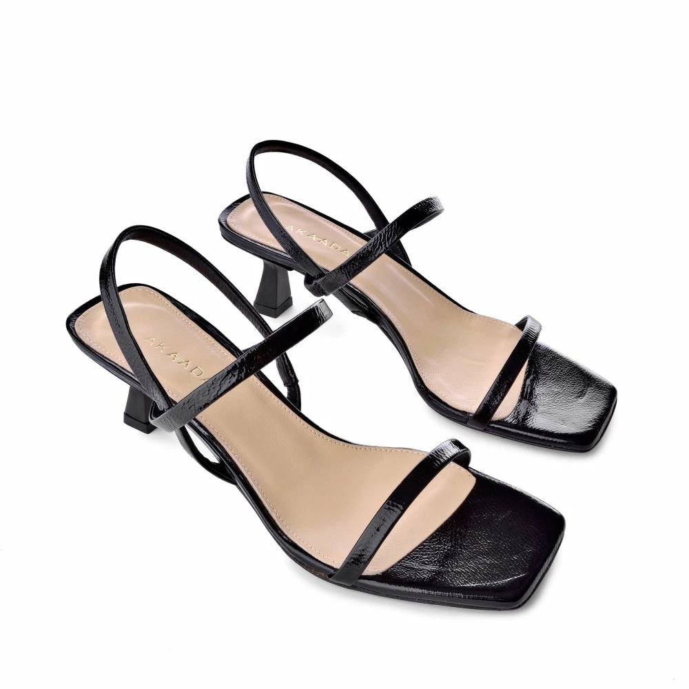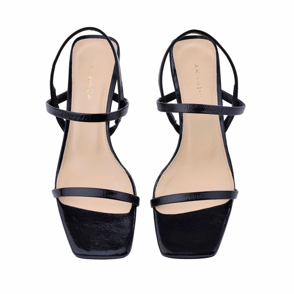 The soft naplak leather strappy sandals feature a square toe, 2.36 inches heel, and an elasticated slingback strap for fastening. 100% Italian soft leather insole allows for a comfortable wear all day long.