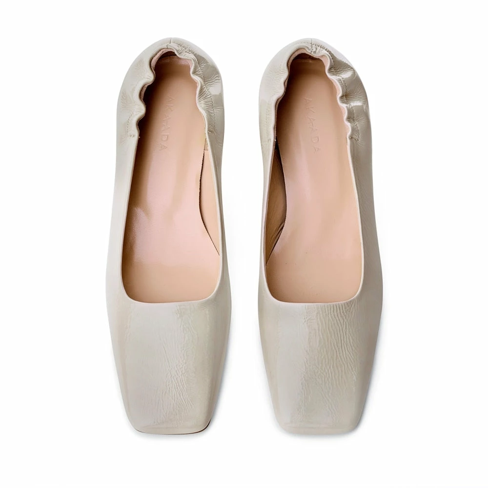 | Brand Model Product number Category Colour Material Lining Insole Outsole Heel Height Made in | AKAADA Nyoko 20036-01-7 Pumps Cream Soft Naplak Leather 100% Goat Leather 100% Leather Leather sole 5 cm / 1.95 inches EU |