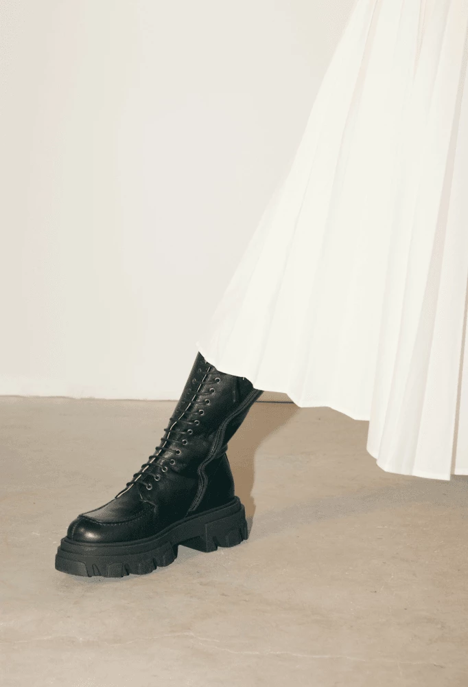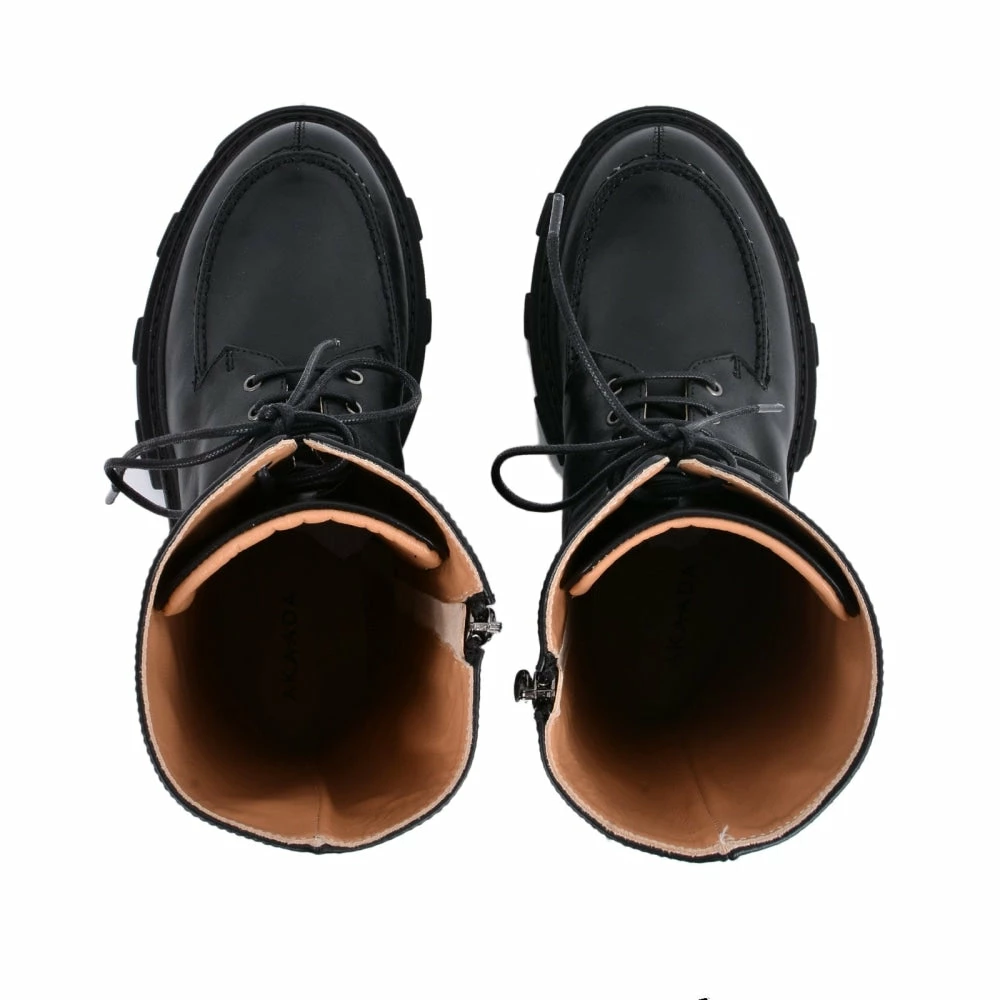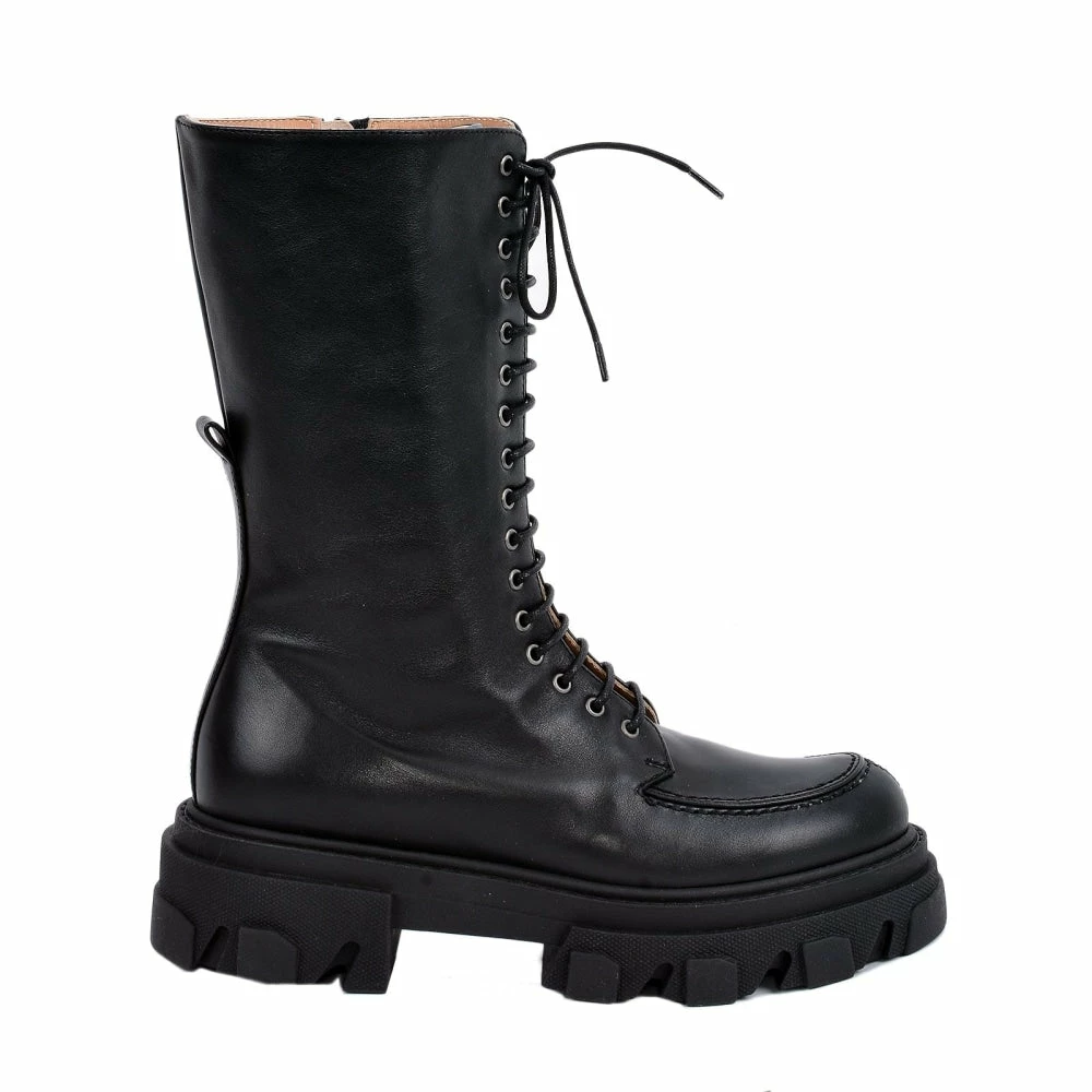 | Brand Model Product number Category Colour Material Lining Outsole Insole Heel Height Fastener Made in | AKAADA Ren 2029VITELLO_NERO Combat Boots Black Cow Leather 100% Leather 100 % Leather 100% Leather 5,5 cm Laces Italy |