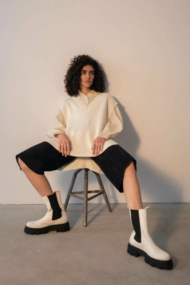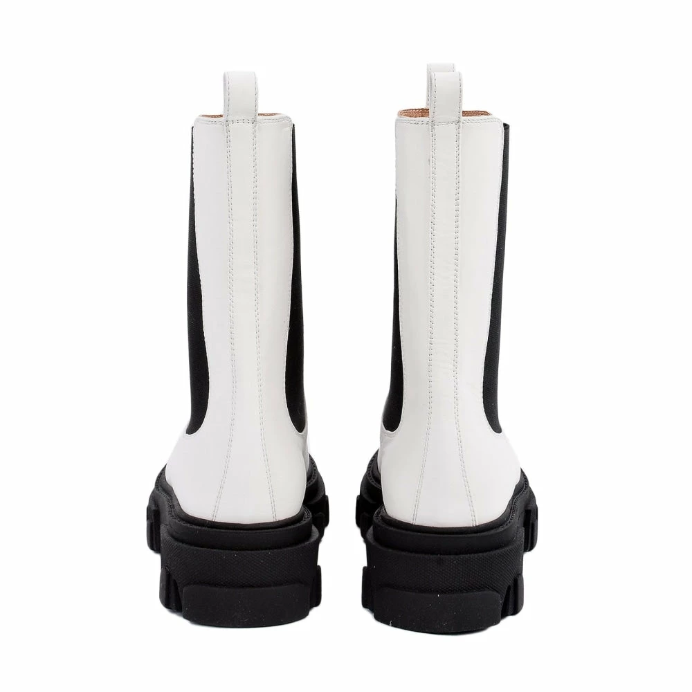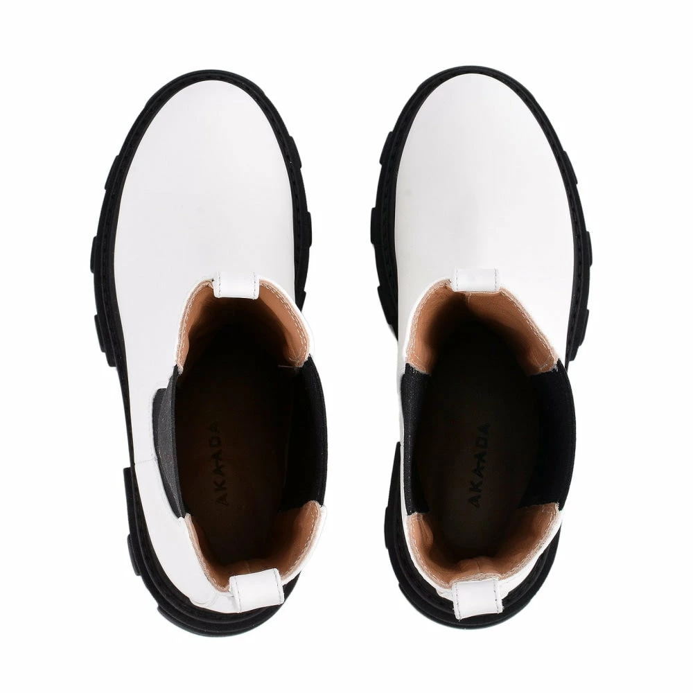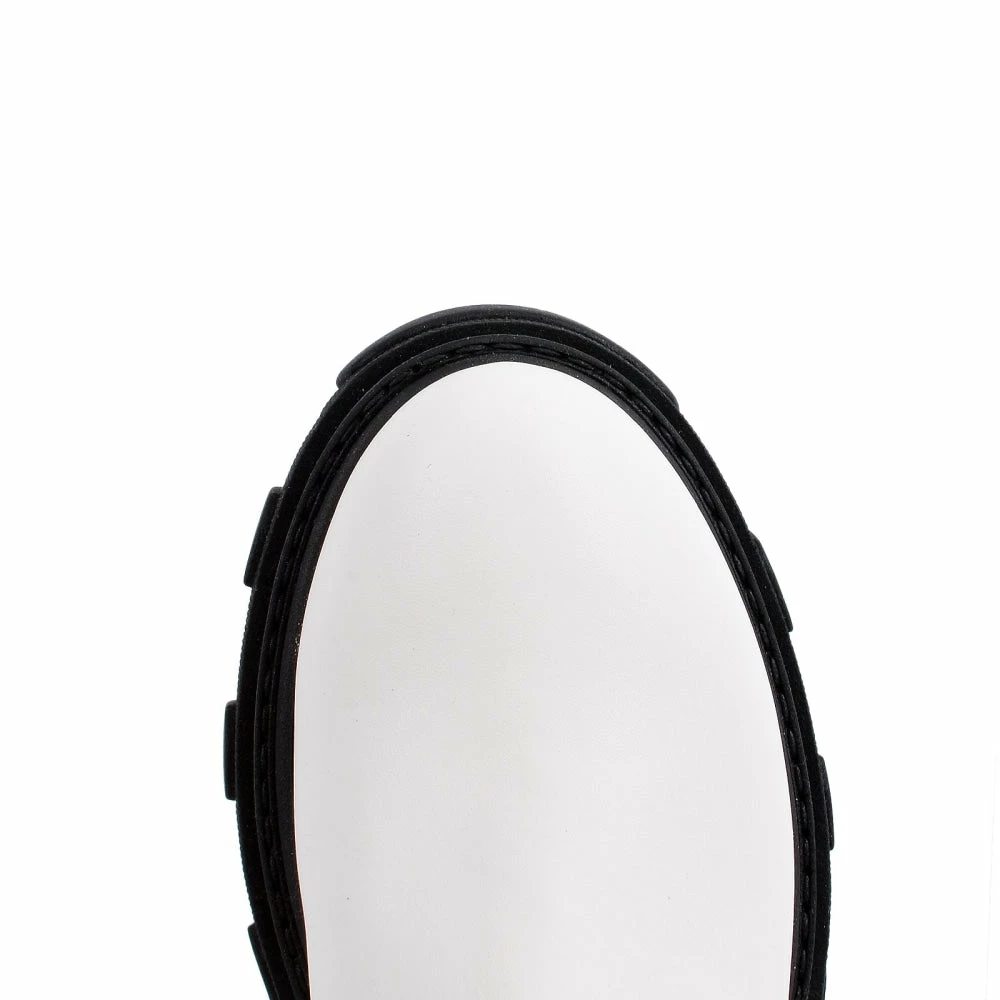 Step out in style with these modern and fashionable combat boots from Akaada and be a style queen everyone admires. These super stylish boots are made with high-quality white cow leather and are a perfect pair for every size. The black elastic gore helps you to slip easily into the boots and looks sophisticated. These non-slip boots have the ideal height to make you look taller while still being comfortable.