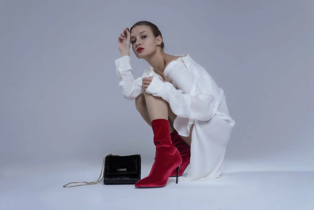 APAIR ROSSO VELOUR! Why not try these fantastically different stiletto-boots. The dark shiny red velour will be sure to create attention and the high thin heel will make you feel as gorgeous as never before.