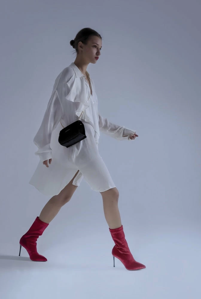 | Brand Model Product number Category Heel Height (From the Highest Point) Shaft Height Colour Outer layer Upper Lining Insole Outsole | A Pair Rosso 90508B_Rosso Boots 10 cm 22 cm Rosso Velour 100% Velour 100% Leather 100% Leather ½ Leather & ½ Rubber |