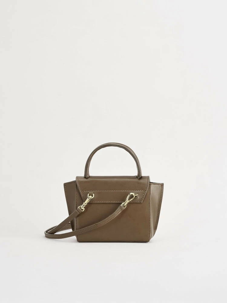 ATP ATELIER Montalcino 111034 Mini Bags Khaki Brown Calf Leather 100% H 11cm, W 18cm, D 6cm Handle drop 7.5cm Strap drop 53cm Gold colored detailing |