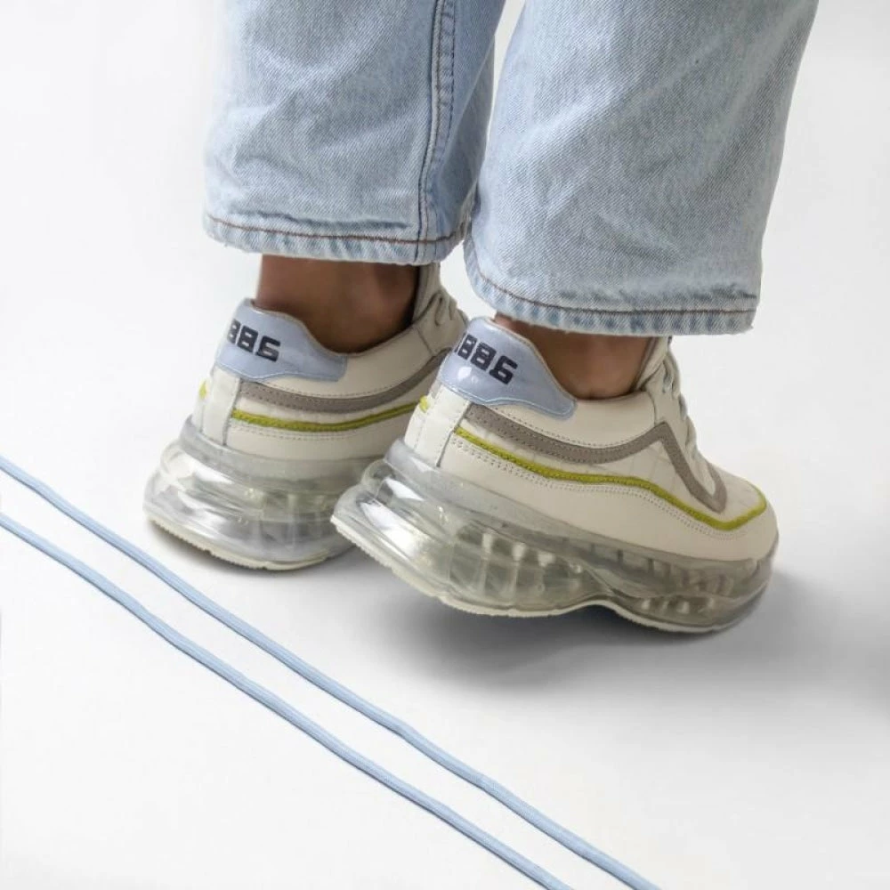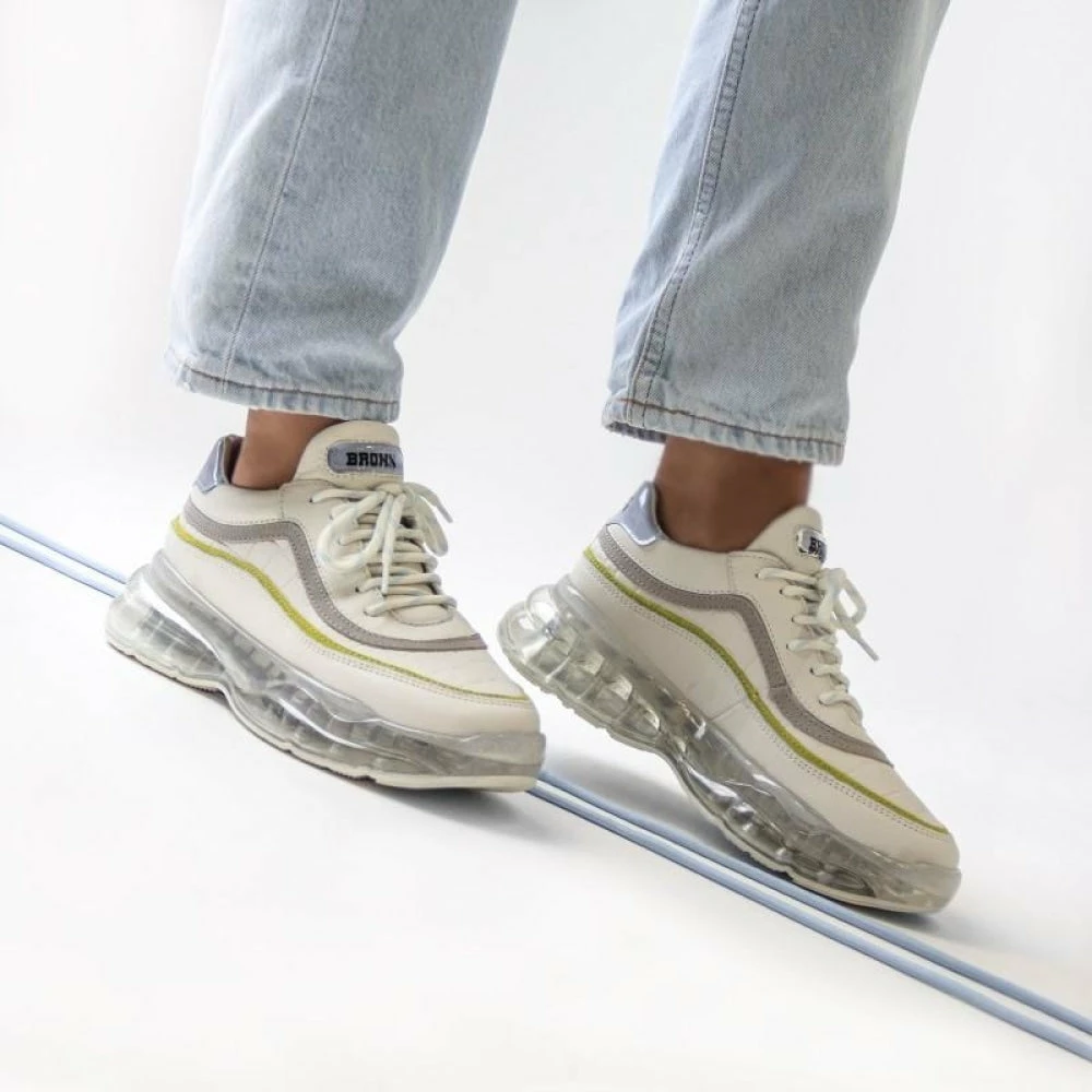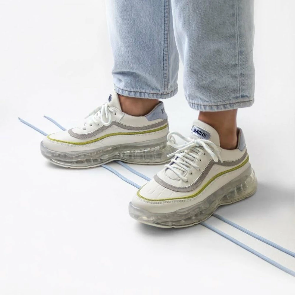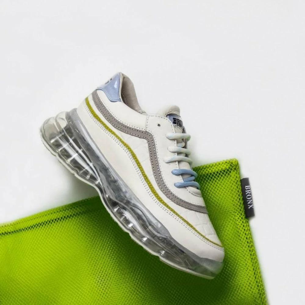 | Brand Model Product number Category Colour Material Lining Removable Sole Closure | BRONX Bubbly 66332-AC-3320 Sneakers Off White / Baby Blue / Lime Soft Nappa / Suede / Nappa croco Leather Yes Laces |