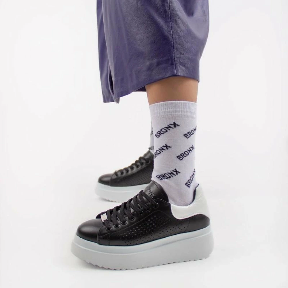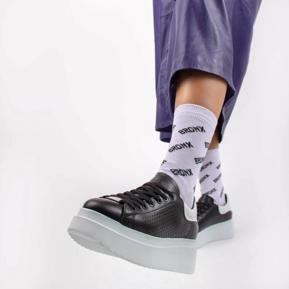 | Brand Model Product number Category Colour Material Lining Removable Sole Closure | BRONX Cononey 66250-AH-203 Sneaker Black Leather Leather Yes Laces |