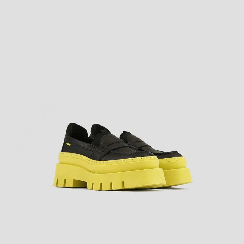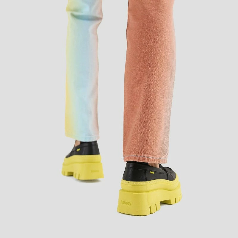 | Brand Model Product number Category Colour Material Lining Outsole Made in | BRONX Evi Ann 66433-A-3608 Loafers Black / Lime Leather Leather Rubber Portugal |