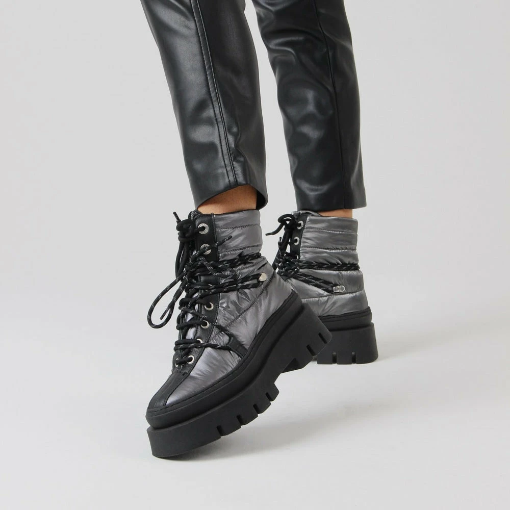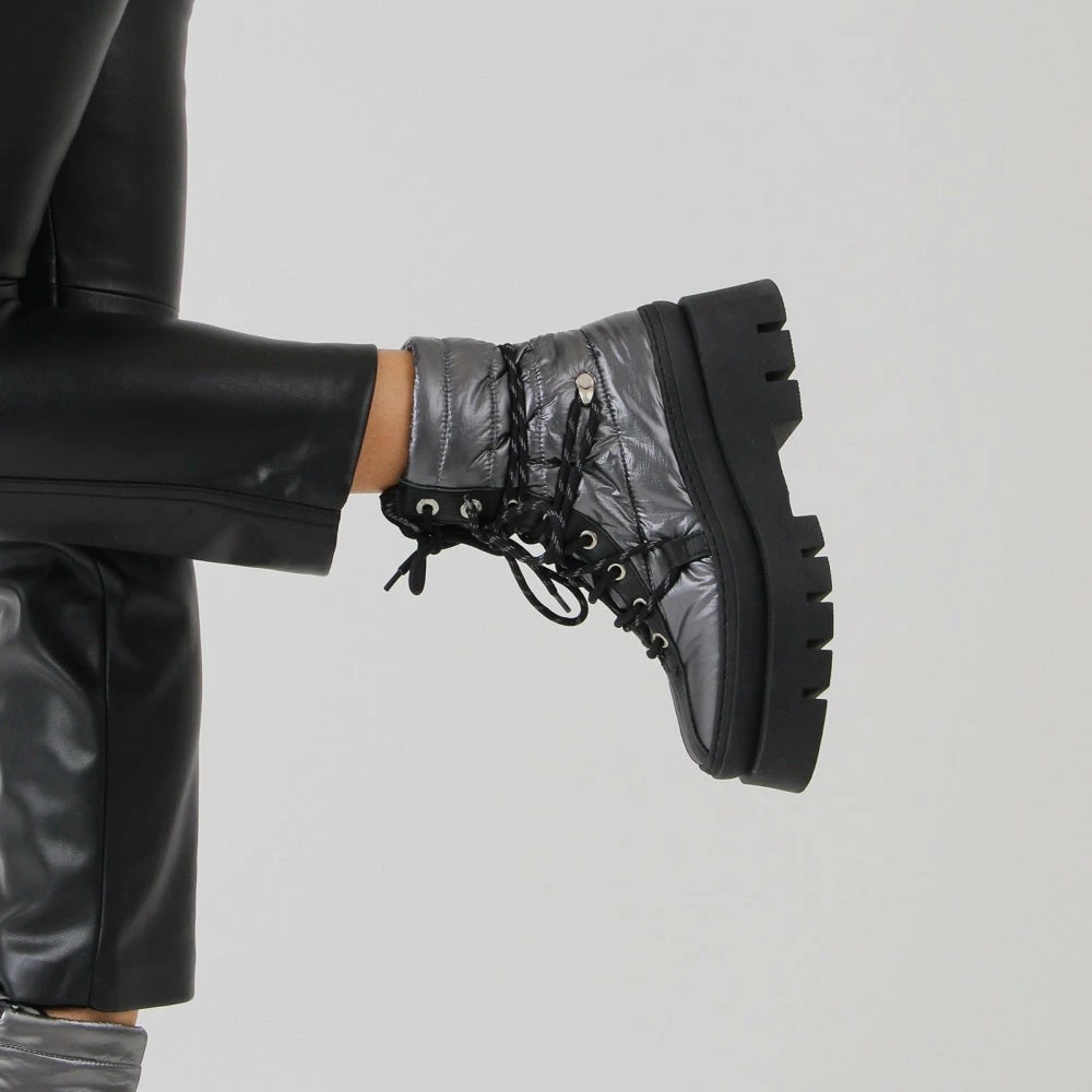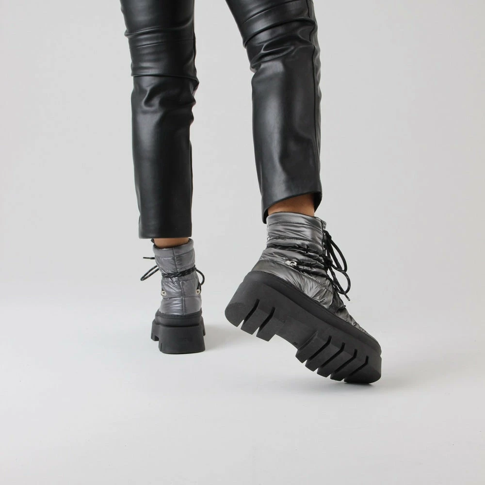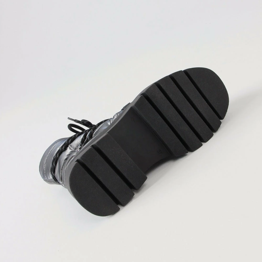 Chic and trendy fashion takes a comfortable turn with these ‘Evi-Ann’ chunky boots from ‘Bronx.’ These flashy and swanky yet cool ‘Gunmetal’ boots are made in Portugal with synthetic leather and synthetic lining for added strength and durability.