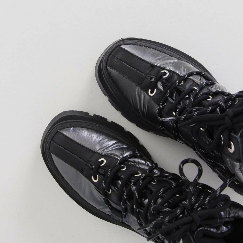 They feature a rounded toe, synthetic upper with double lace fastening, 14 cm shaft, and a chunky platform with 4.5 cm heel and mudguard. The insoles are removable and soft and cushioned to comfort your foot throughout the day.