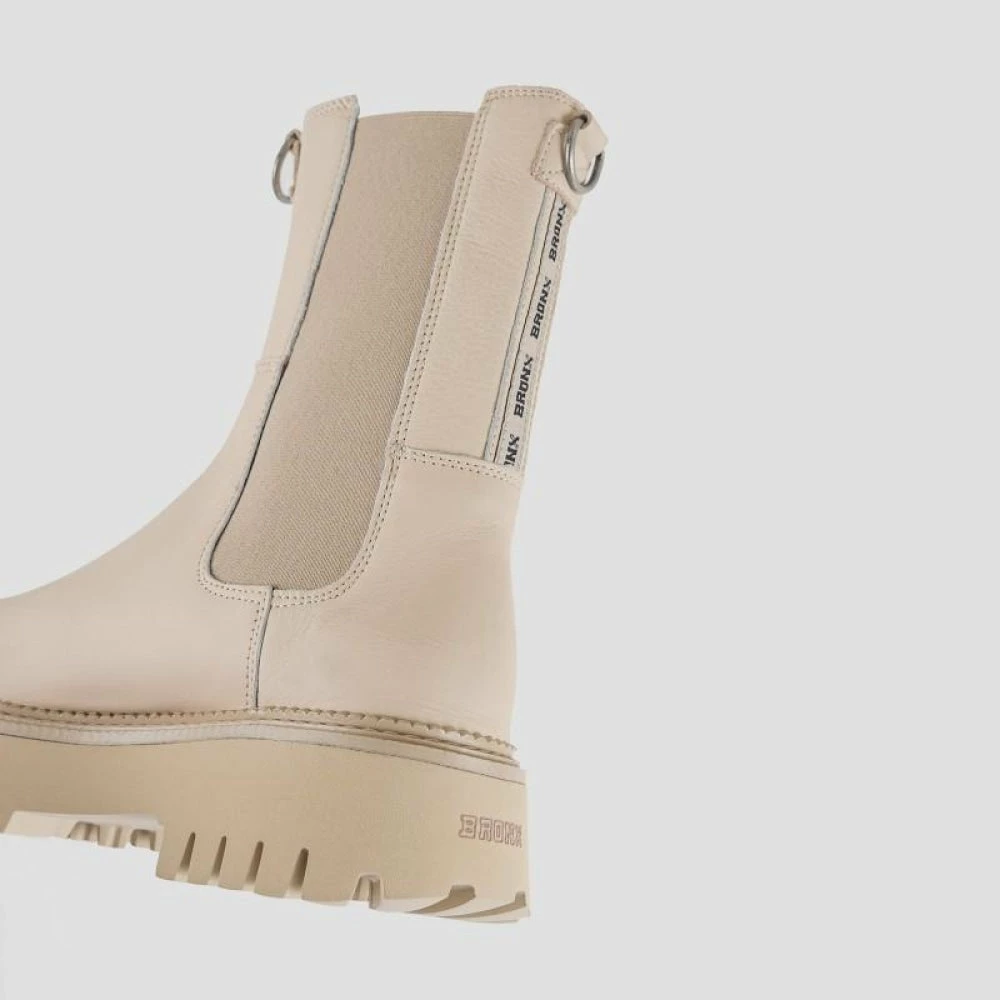 | Brand Model Product number Category Colour Material Lining Schaft Height Removable Sole Closure Made in | BRONX Groovy 47268-AA-25 Chelsea Boot Camel Leather Leather 19 cm Yes Elastic Portugal |