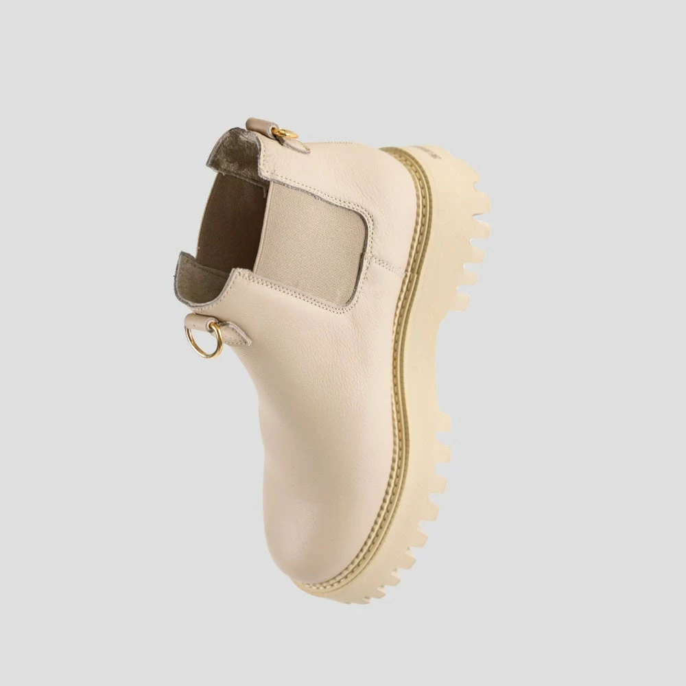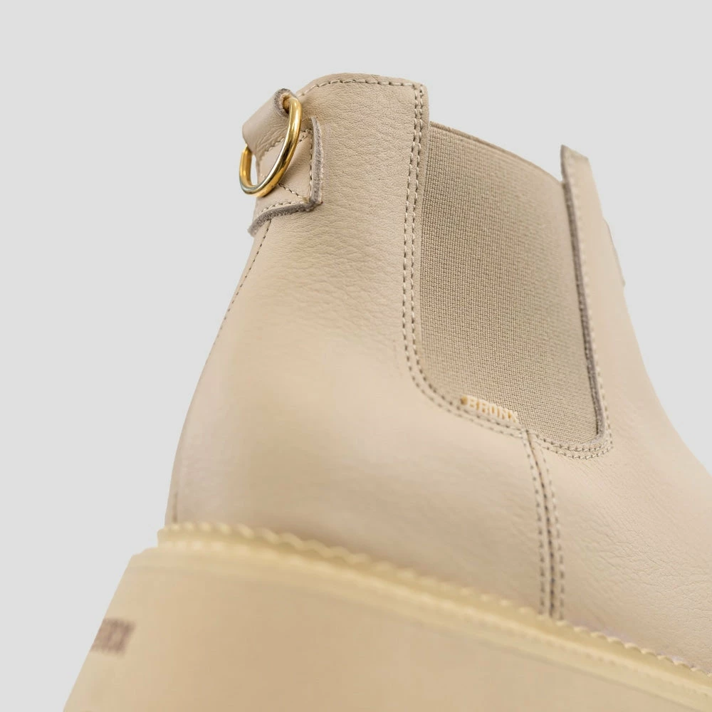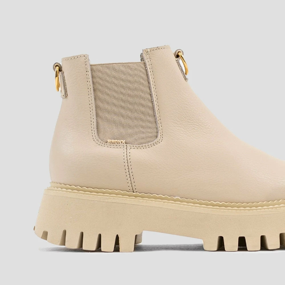 | Brand Model Product number Category Colour Material Lining Schaft Height Platform Removable Sole Closure Made in | BRONX Groovy Chelsea Low 47377-A25 Chelsea Boot Camel Leather Soft Nappa Leather 11 cm 3 cm No Elastic Portugal |