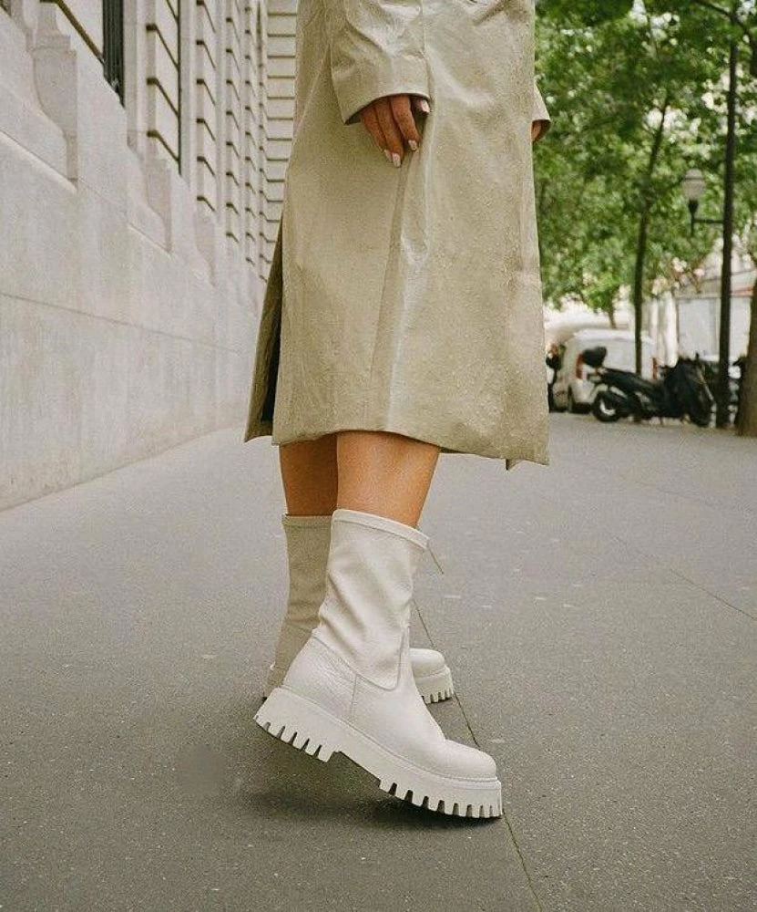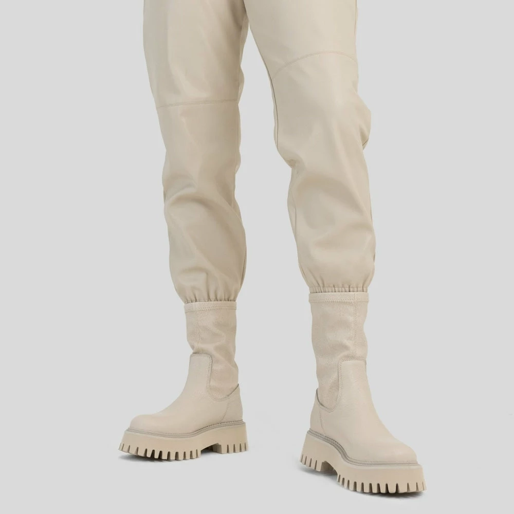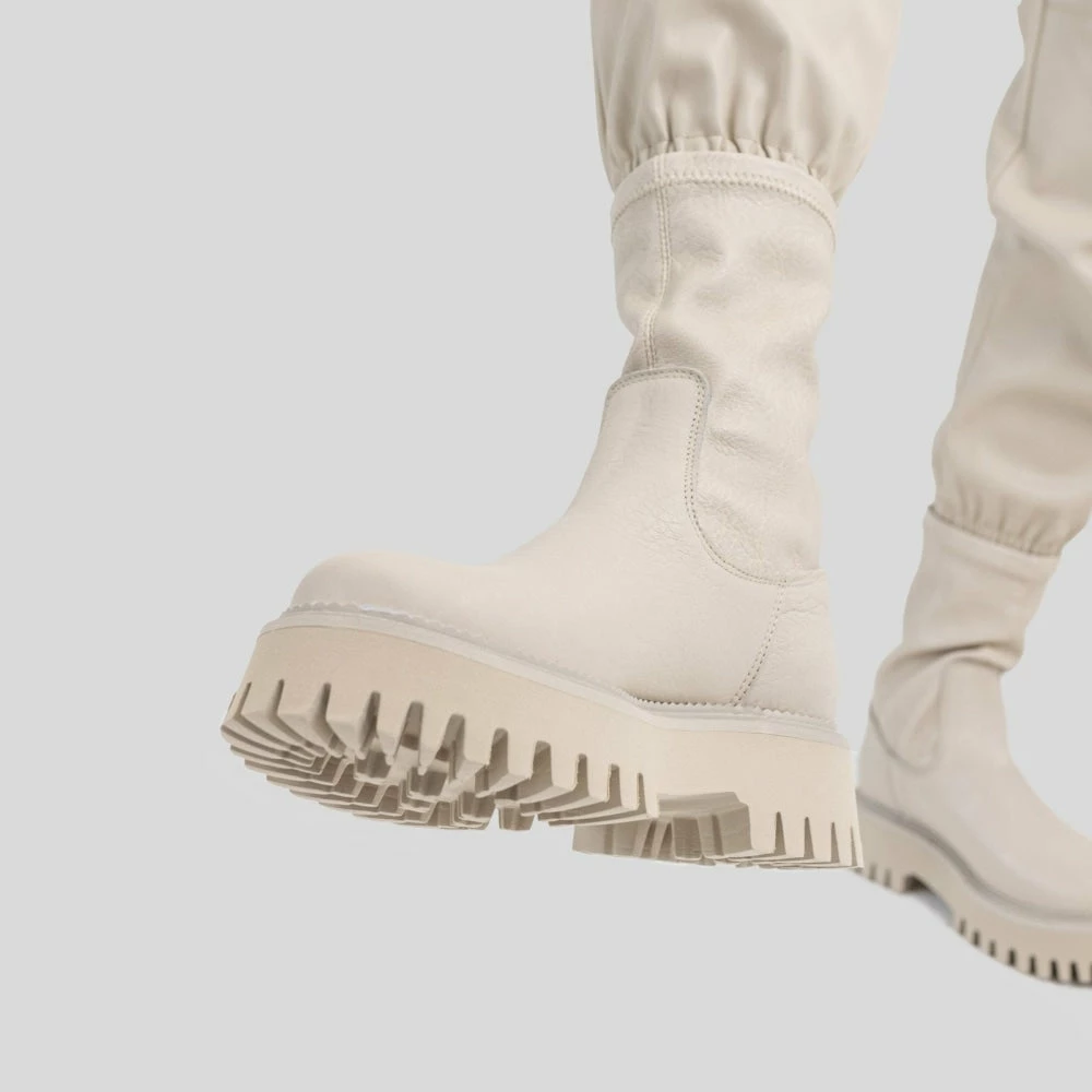 Extend your limits of fashionable styling with ‘Groov-Y Stretch’ chelsea boots from ‘Bronx.’ Featuring a stylish leather upper, 18 cm shaft in stretchable leather, and a chunky rugged platform, these classy ‘Winter White’ boots are a fresh getaway from a boring style.