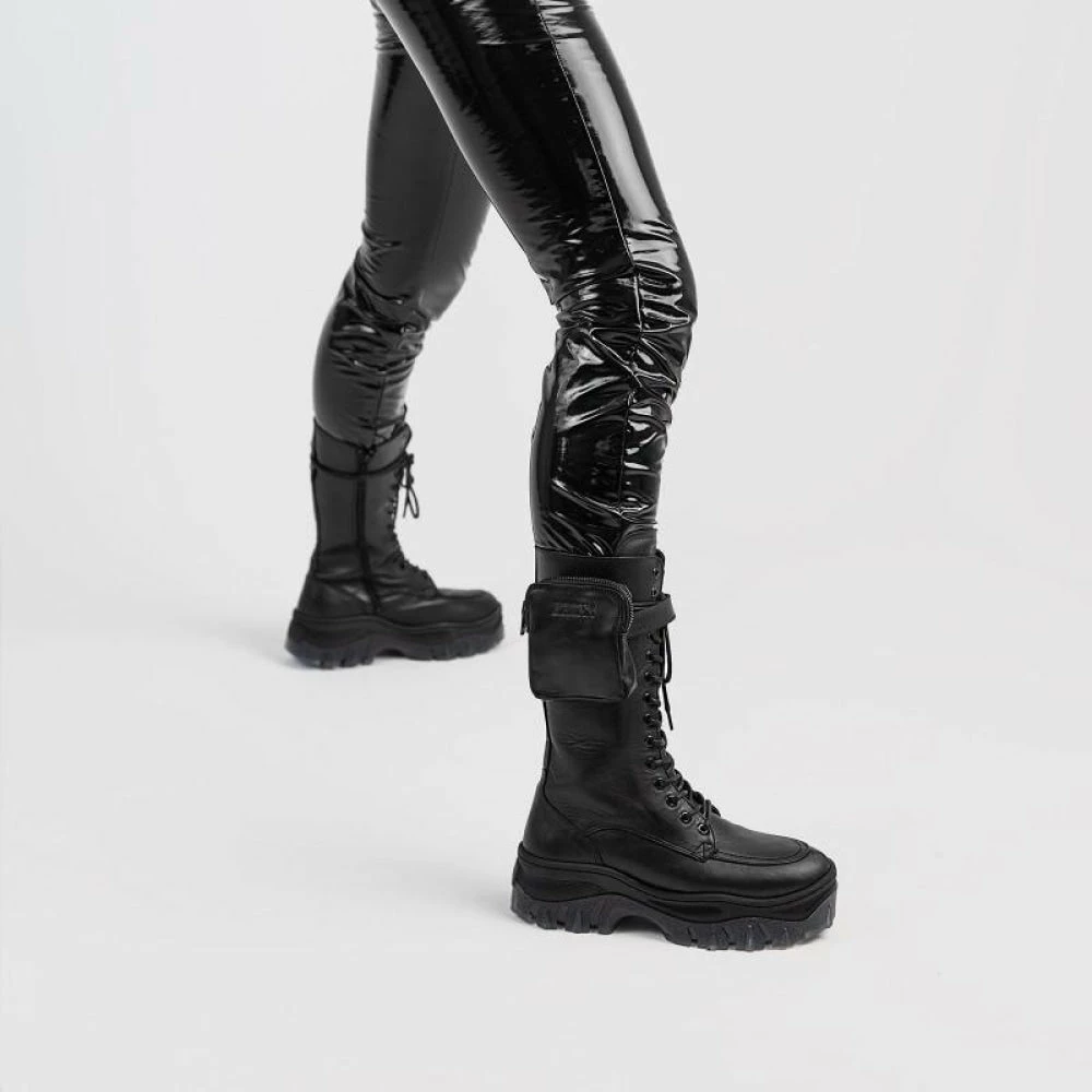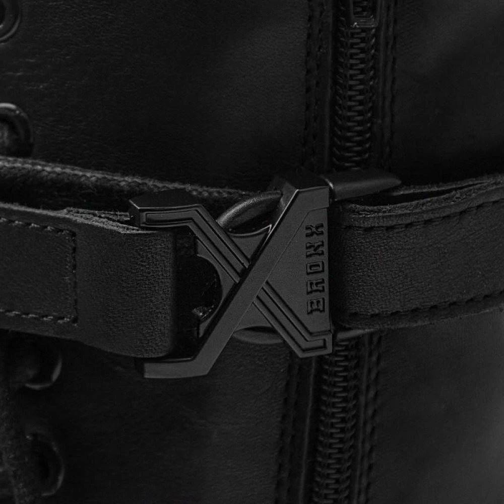| Brand Model Product number Category Colour Material Lining Schaft Height Removable Sole Closure | BRONX Jaxstar High 14187-A01 High Boots Black Leather Leather 28 cm Yes Zipper / Laces |