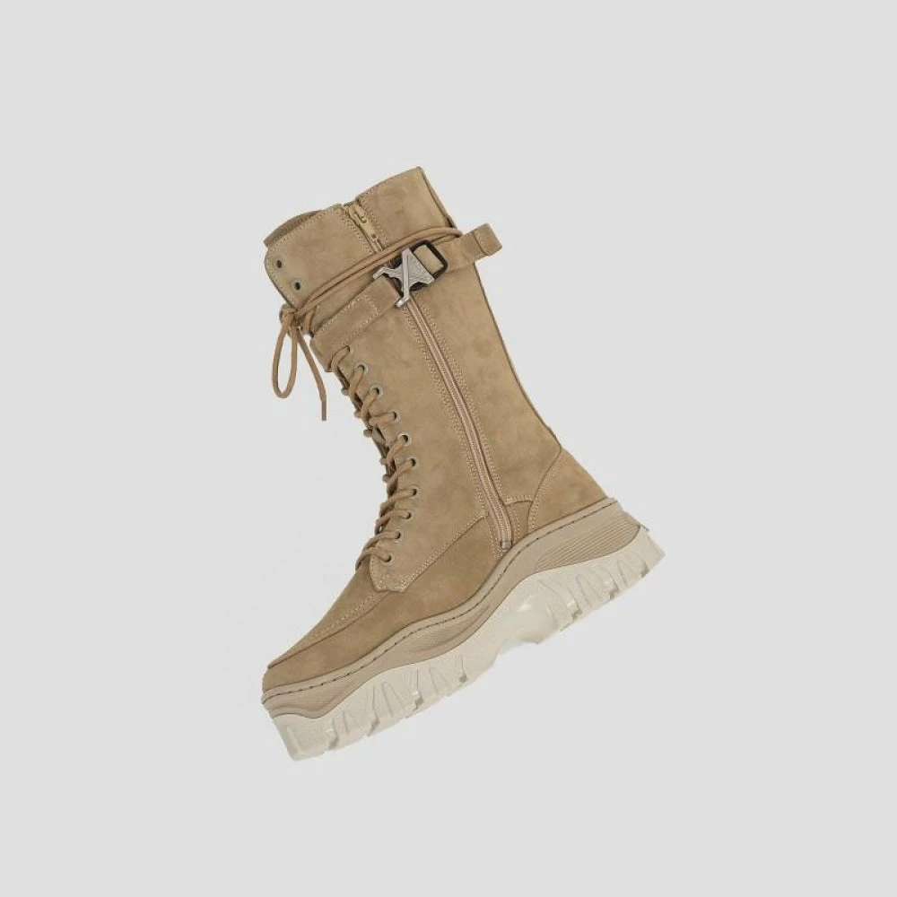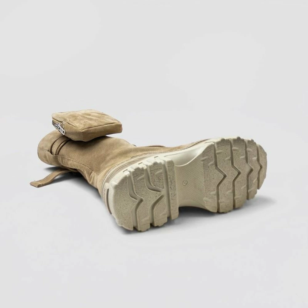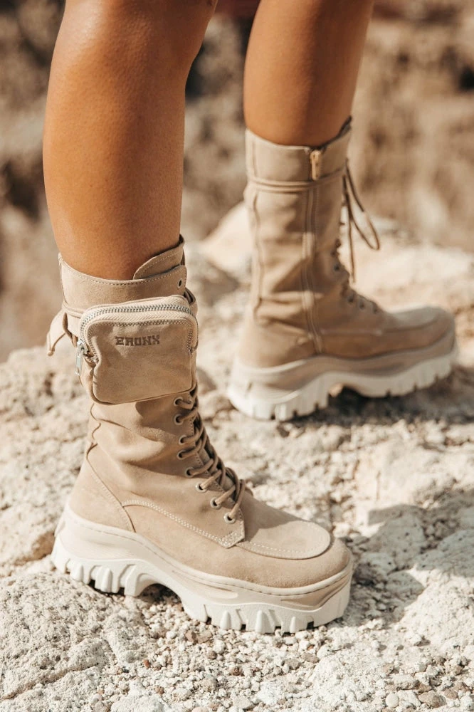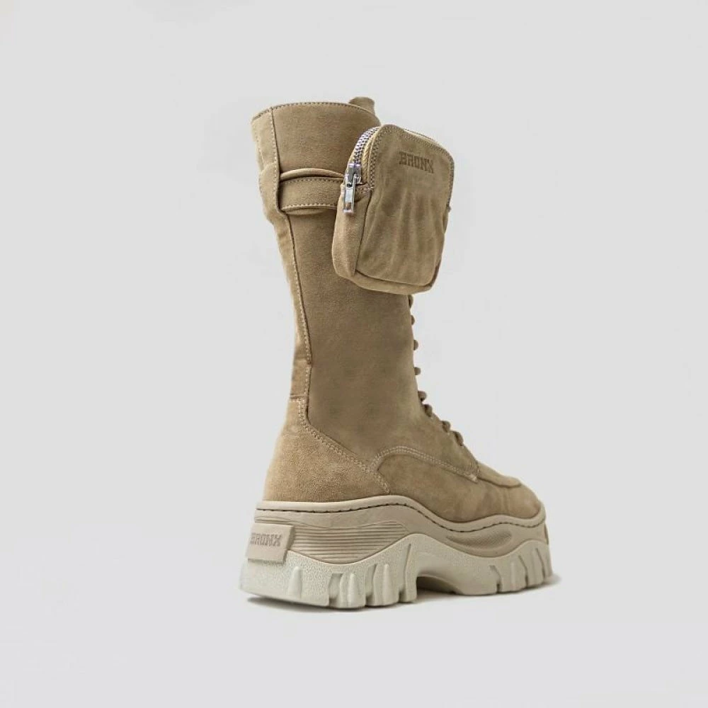 They feature a suede upper, lace-up front, a specially designed pouch on the right shoe, and a 28 cm shaft. The pouch is removable and attached to the shoe with Bronx’s X clip that looks chic and stylish. The zipper and lace fastening ensures double protection and lets you easily slip into them.