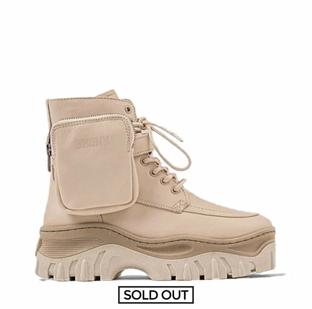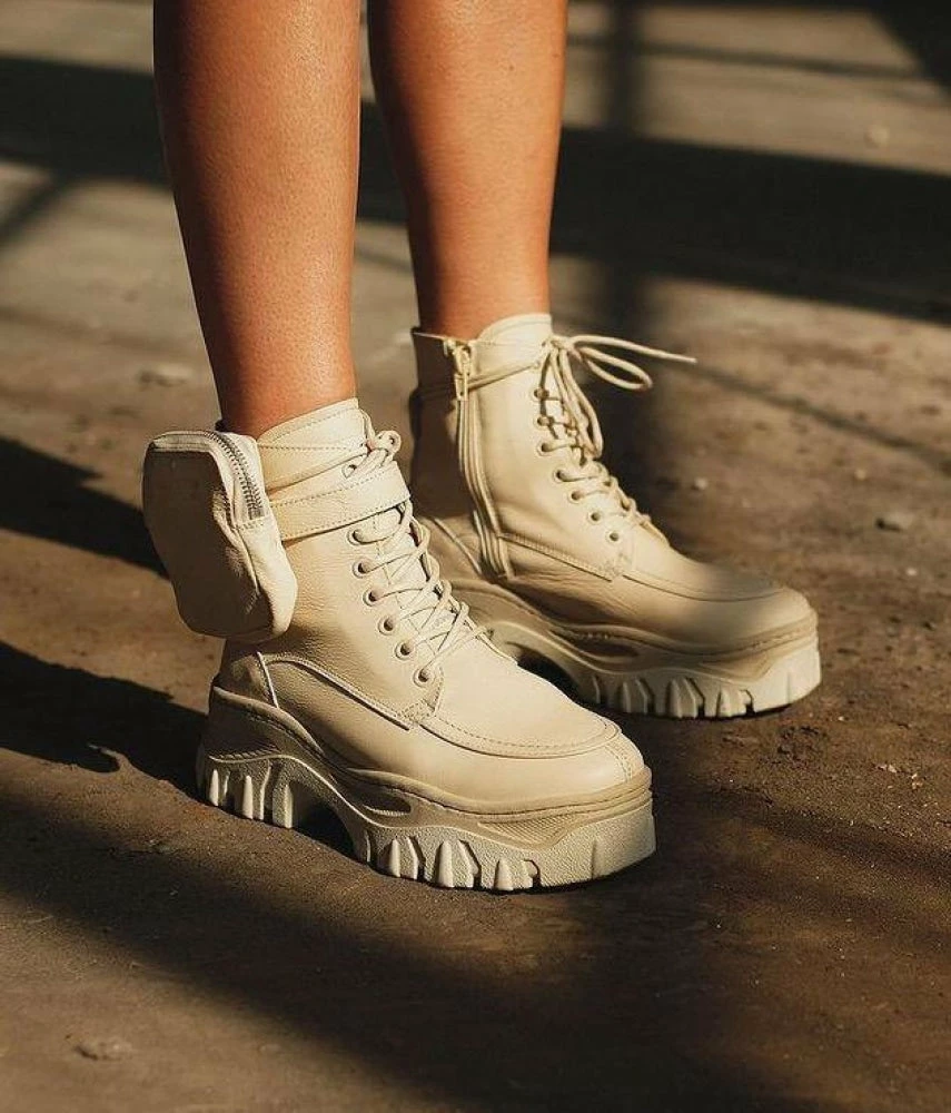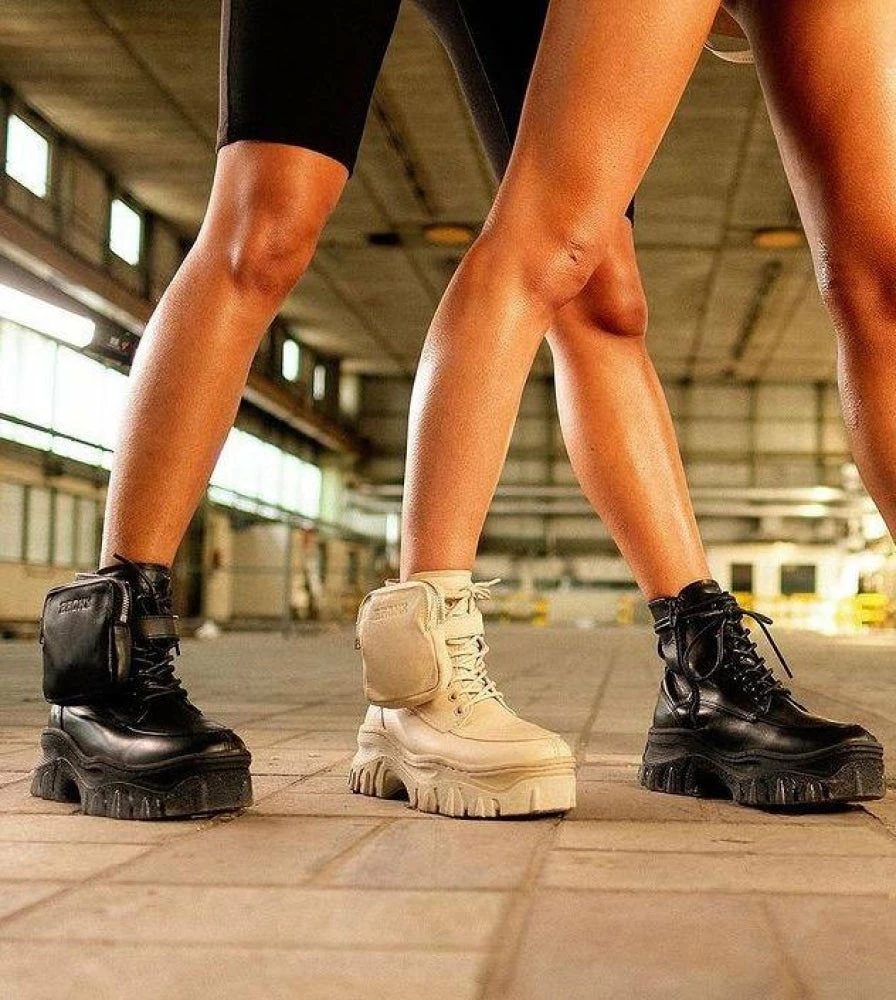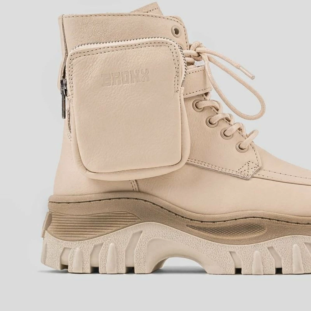 ‘Jaxstar Mid Cut’ from ‘Bronx’ are the most chic and one of the coolest boots in their category. These ‘camel’ chunky sneakers feature a leather upper in matte finish, a chunky 4 cm platform, a 16 cm shaft, and a specially designed removable pouch on the right shoe.