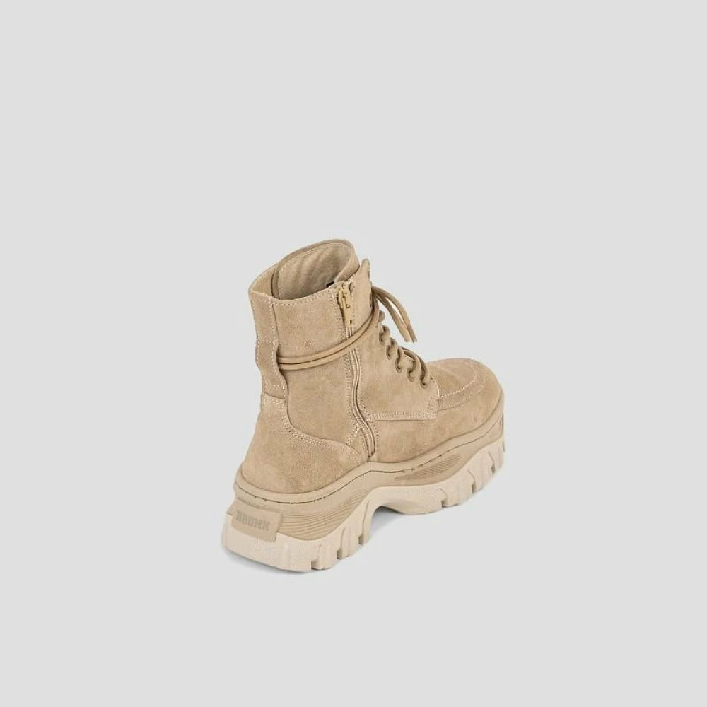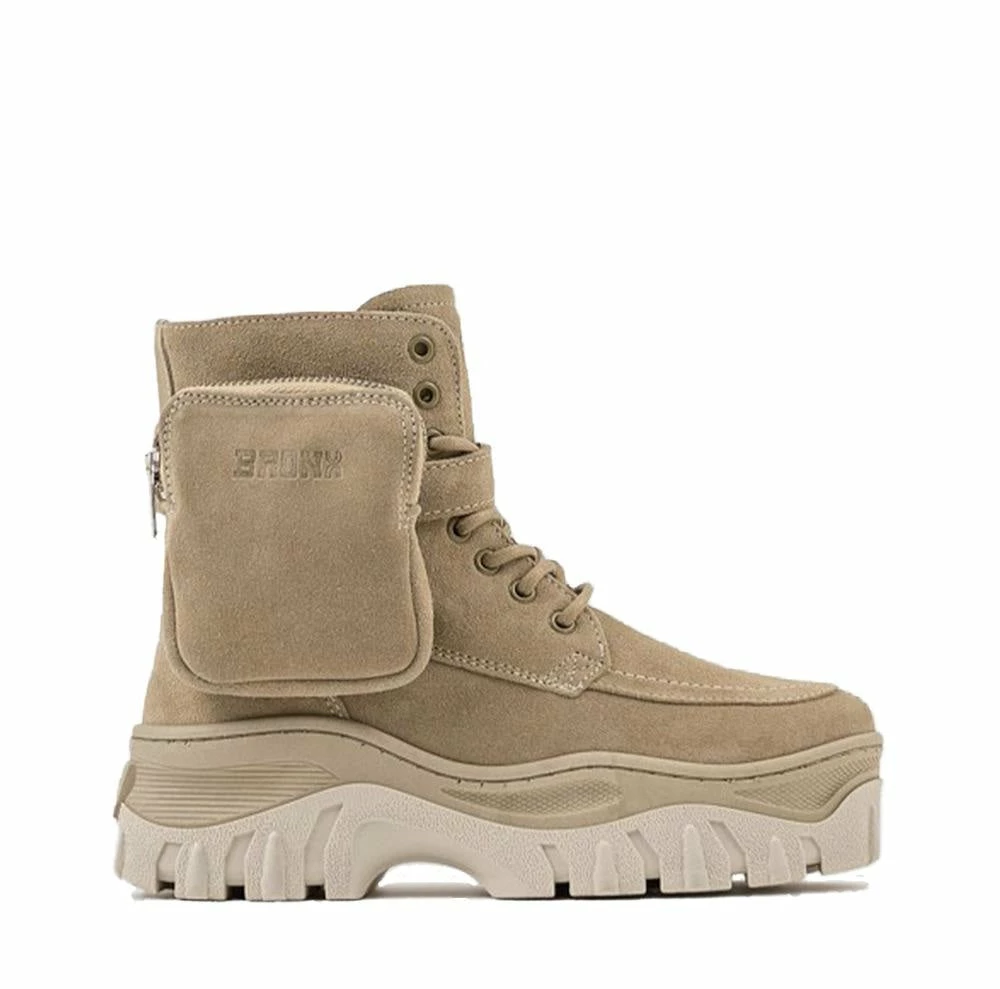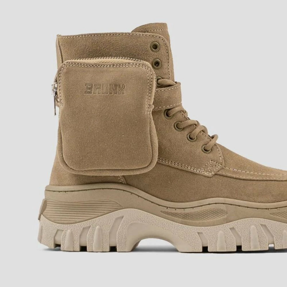 | Brand Model Product number Category Colour Material Lining Schaft Height Removable Sole Closure | BRONX Jaxstar Mid Cut 47335-C-125 Ankle Boot Sneaker Cappuccino Suede / Leather Leather 16 cm Yes Zipper / Laces |