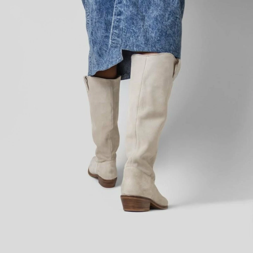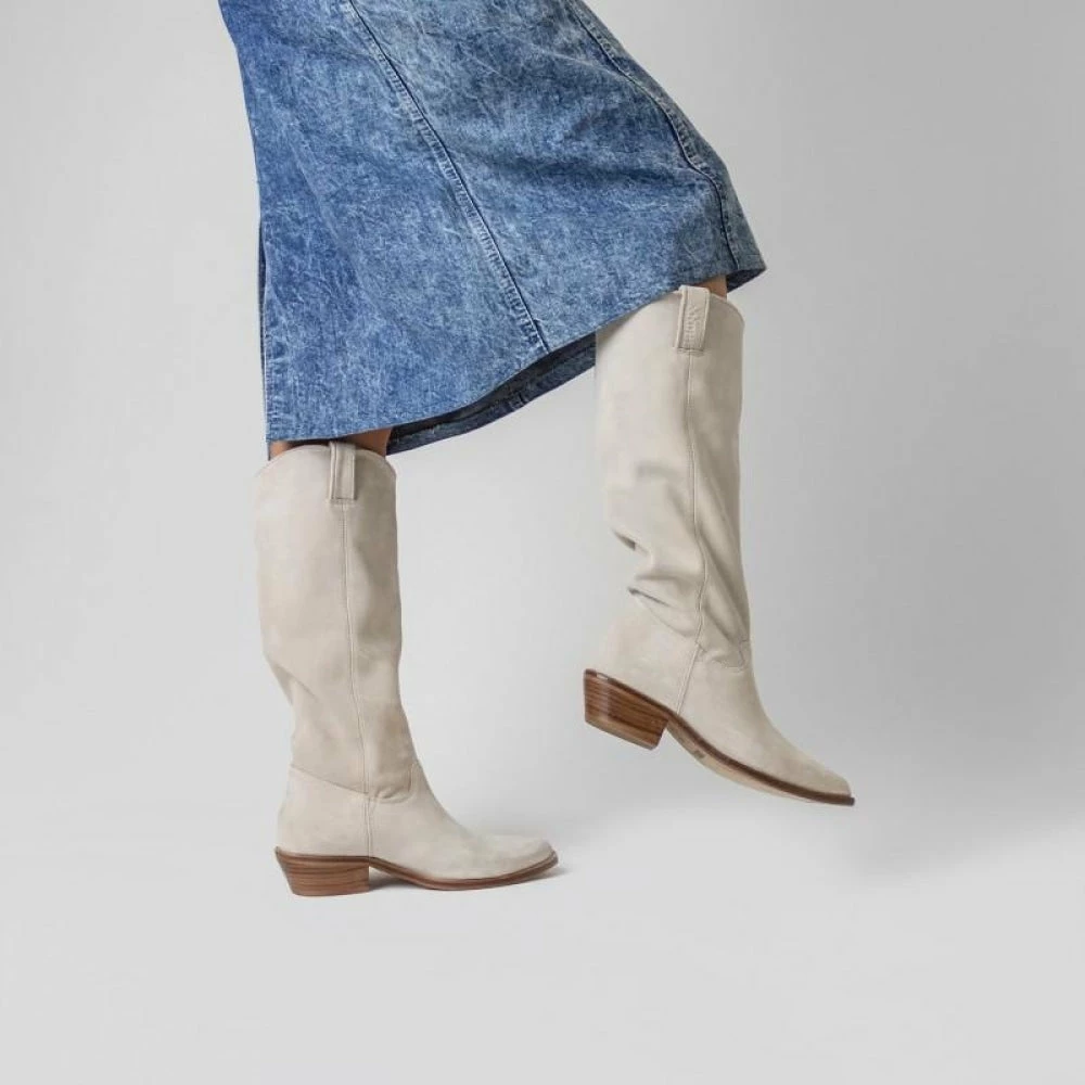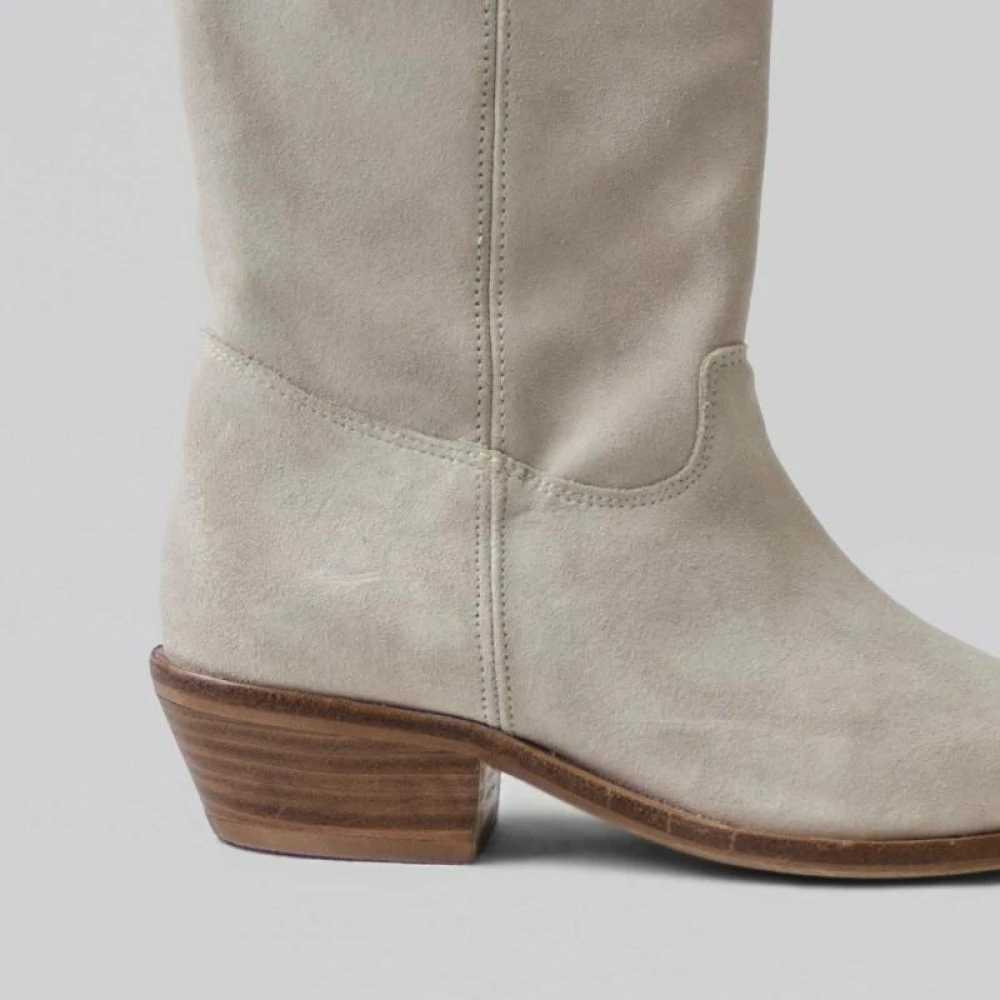 Super beautiful western boots from Bronx. Slightly pointed muzzle with square end. This suede boot has all the ingredients for a true trend setter. Very comfortable and perfect to complete your look. The boot has a shaft height of 38 cm and a heel of 4 cm.Â