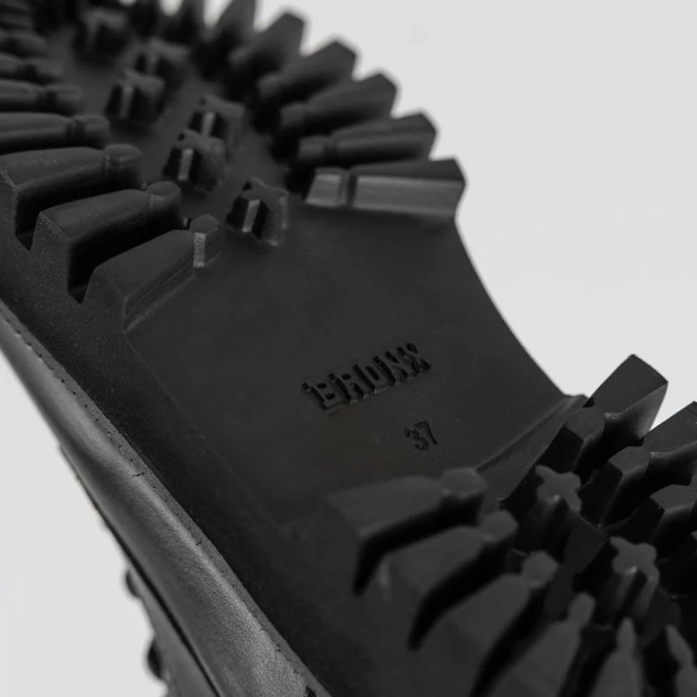 | Brand Model Product number Category Color Material Lining Sole Shaft Height Closure | Bronx Groovy Lace-Up 14215-A01 Combat Boots Black Leather Leather Rubber 38 cm Lace-up front |