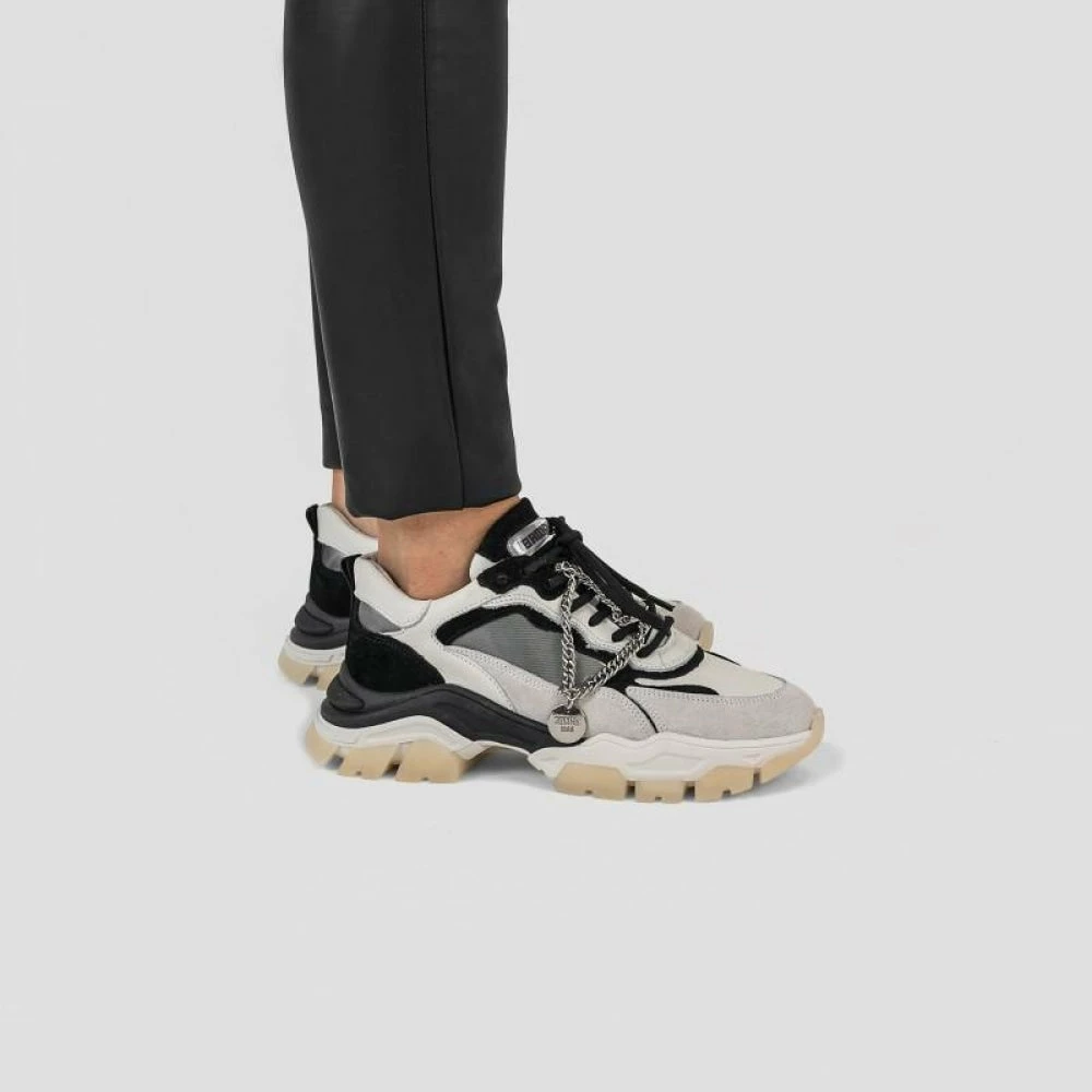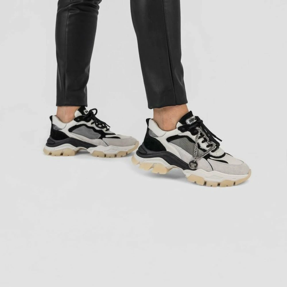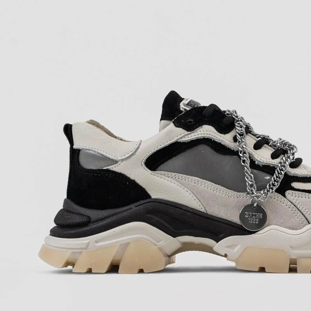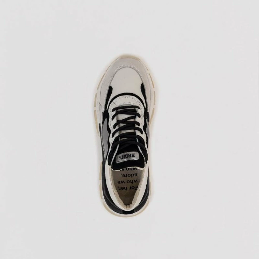 | Brand Model Product number Category Colour Material Lining Removable Sole Closure | BRONX Tayke Over 66366C-CH-3104 Sneakers Black / Off White Suede / Nappa / Hologram Leather Yes Laces |
