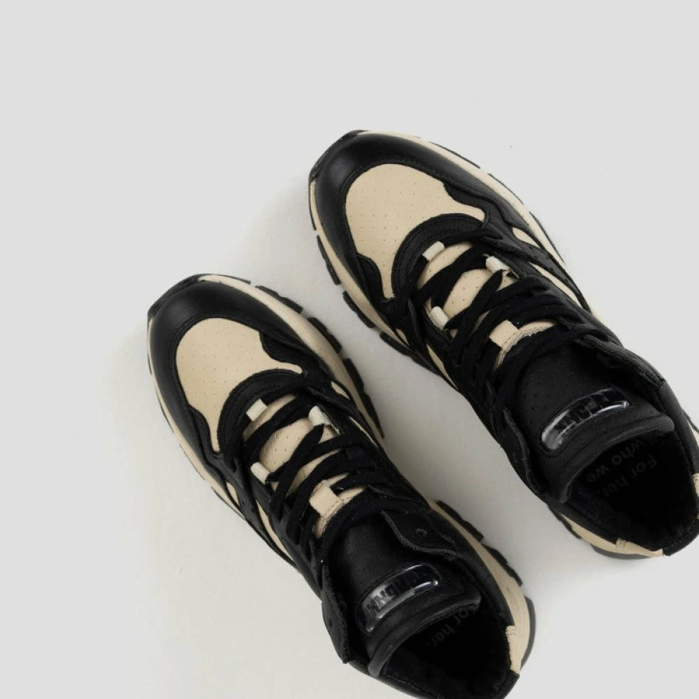 Exquisite styling and comfortable fashion come together with ‘Tayke Over High Top’ chunky sneakers from ‘Bronx.’ These ‘Black Camel’ sneakers are the right shoe for casual styling. They feature a synthetic leather upper, lace-up fastening, and an 8 cm shaft with a chunky platform in dual colors.