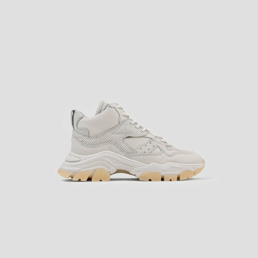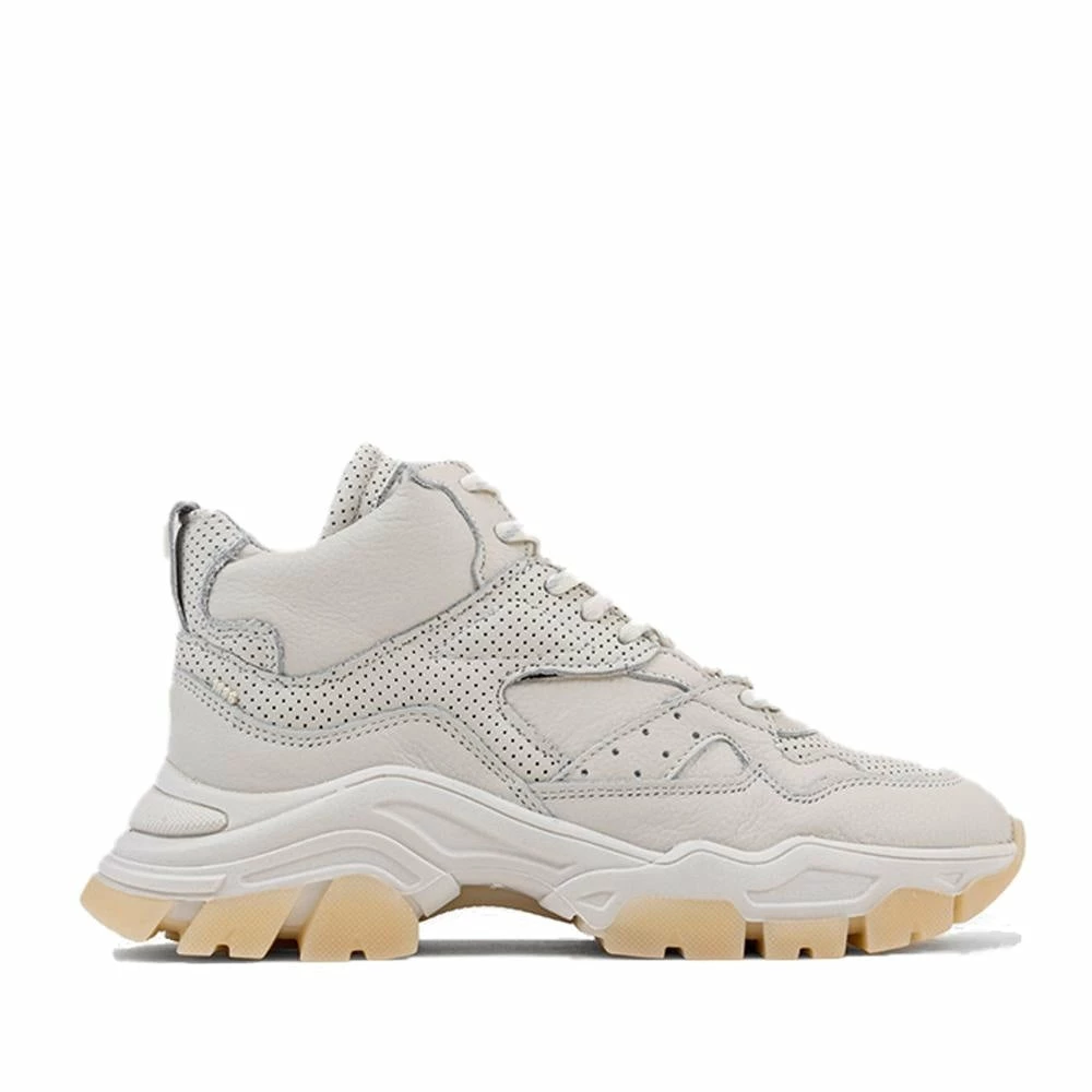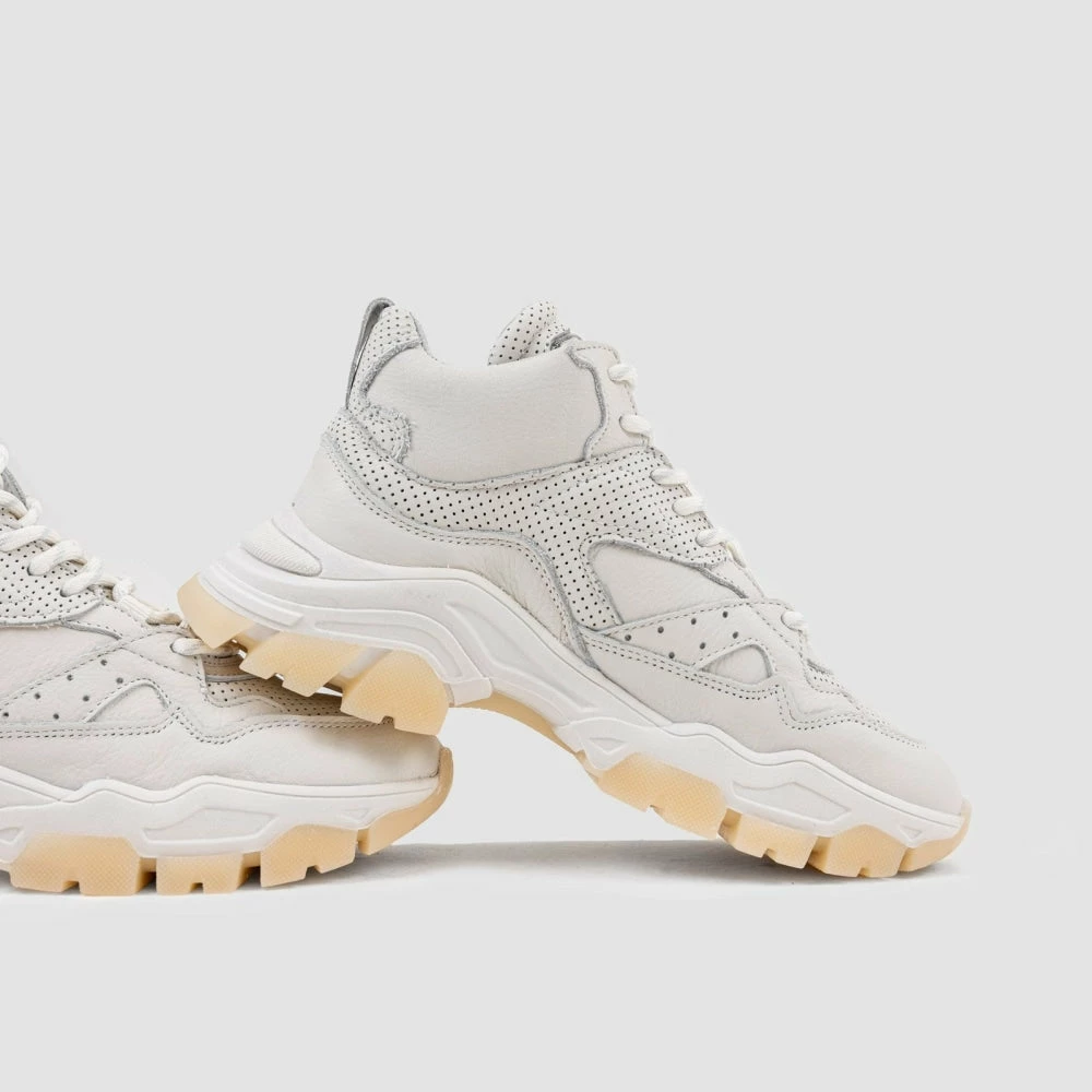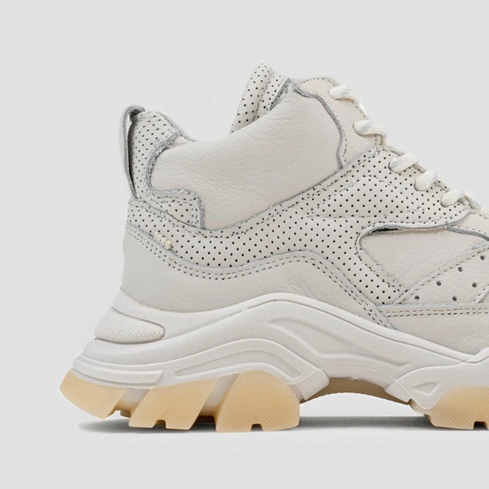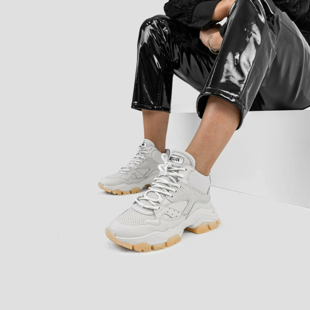 | Brand Model Product number Category Colour Material Lining Schaft Height Removable Sole Sole Closure Made in | BRONX Tayke Over High Top 47309-A05 Sneakers Off White Leather / Synthetic Imitation Leather 8 cm Yes Rubber Laces Portugal |
