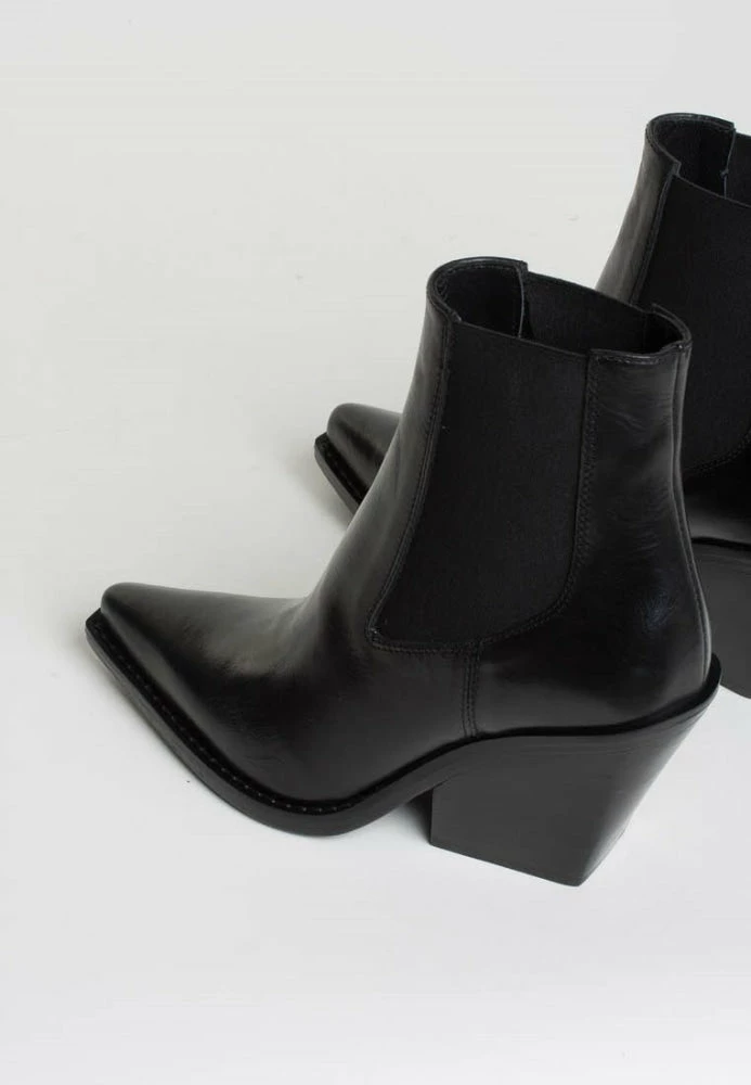 | Brand Model Product number Category Color Material Lining Heel Height Made in | BUKELA Adele Adele-Black Ankle Boots Black 100% Leather Leather 7.5 cm Italy |