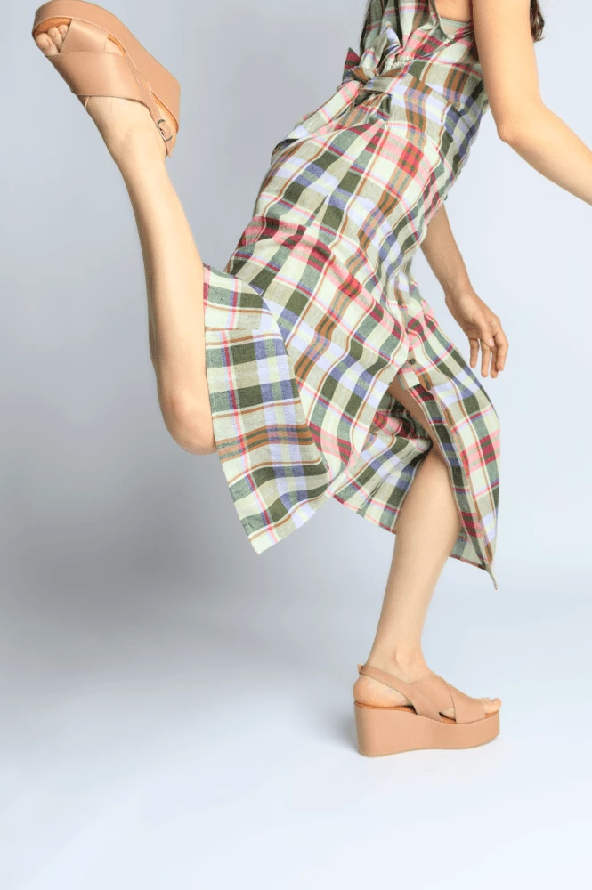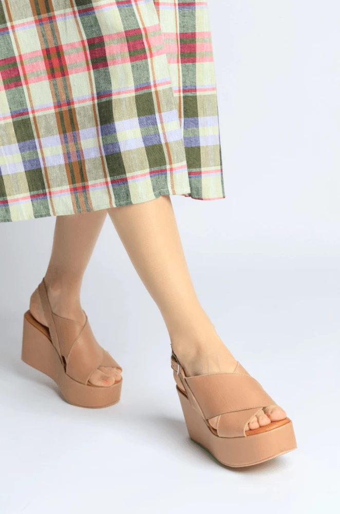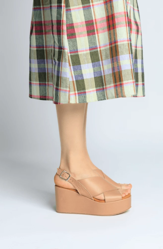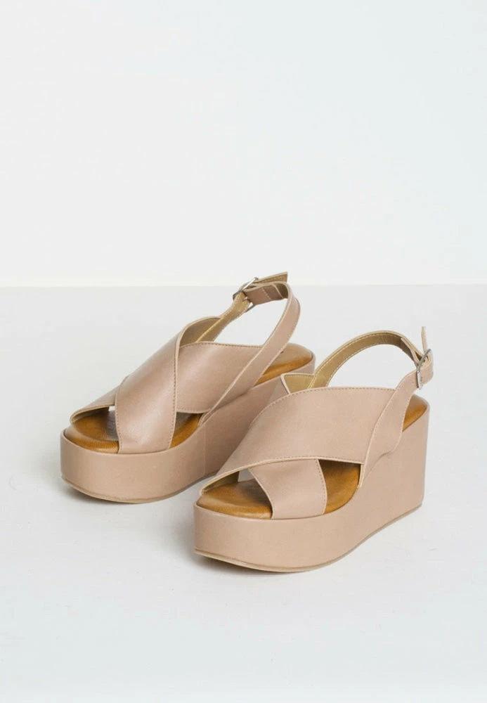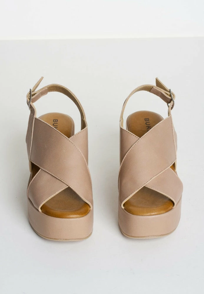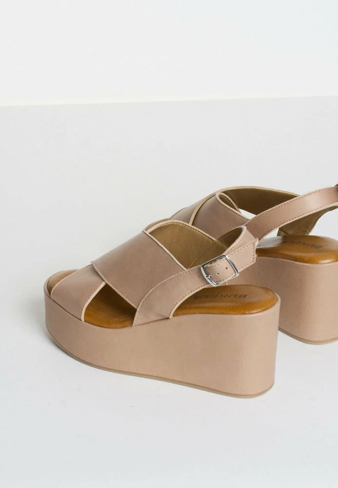 Minimalist design, comfortable wear, and a durable finish is what you get when you buy ‘Bianca’ platform sandals from ‘Bukela.’ Featuring a criss-cross strap upper, slingback pin-buckle fastening, and a chunky lightweight platform, these ‘Nude’ sandals are super comfortable for relaxed everyday wear.