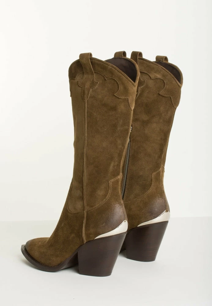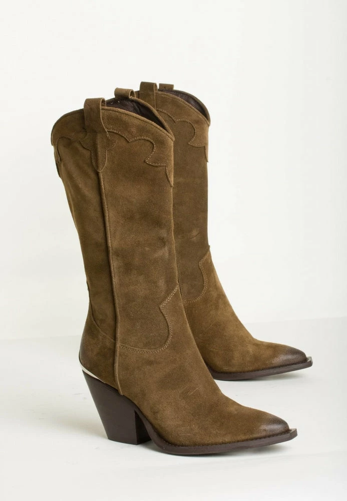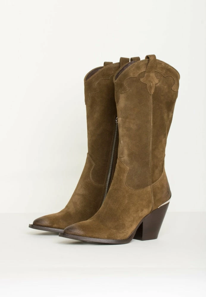 Boots in a super nice moss green color. The boots have pointed muzzle with square end. The boots have a zipper on the inside and a sturdy block heel of approx. 8 cm.