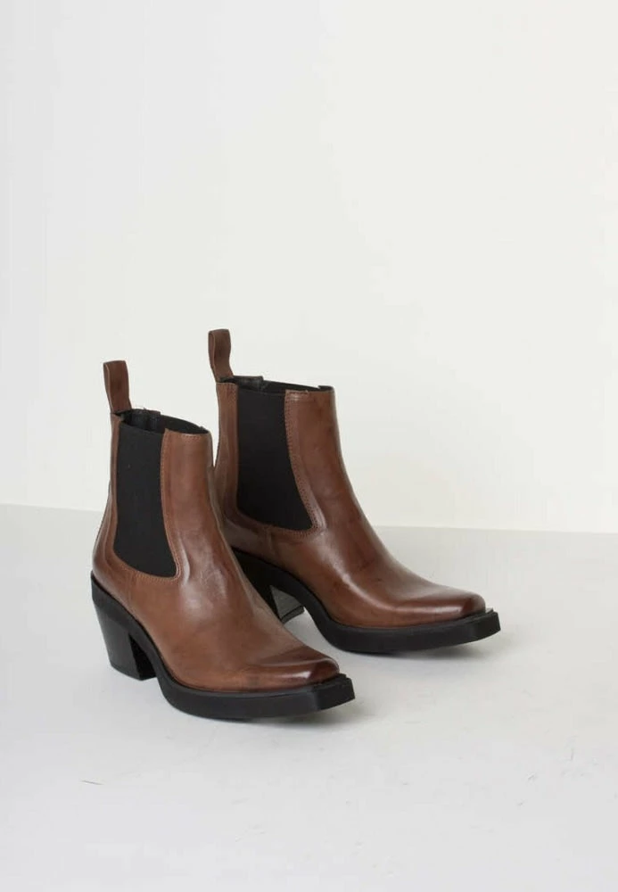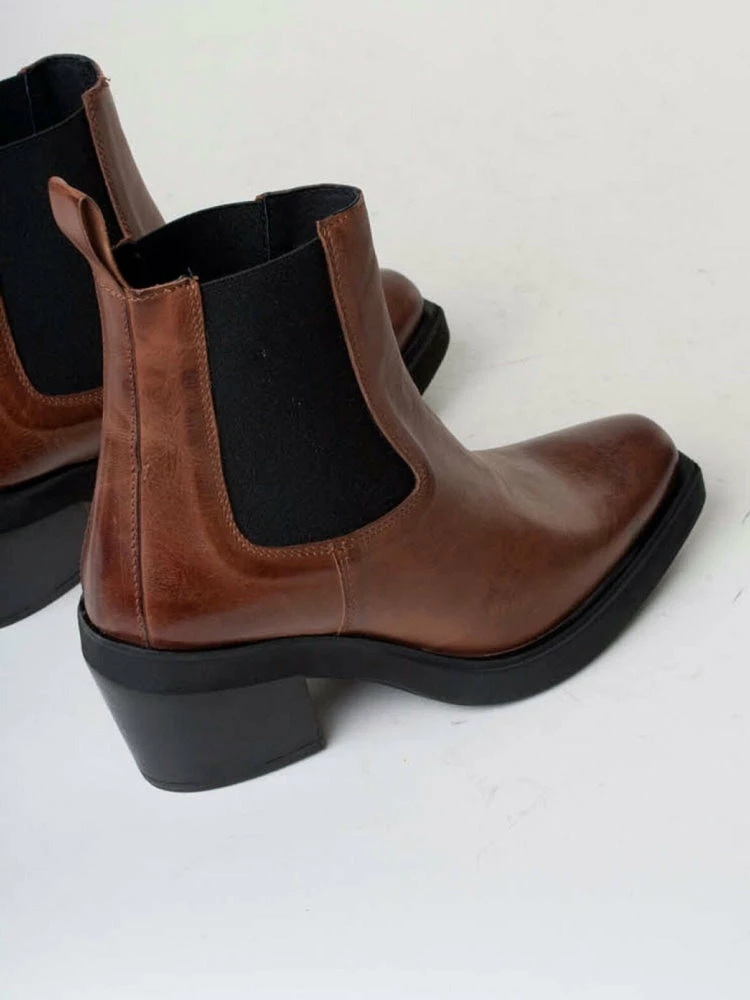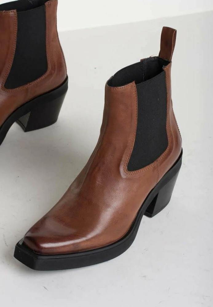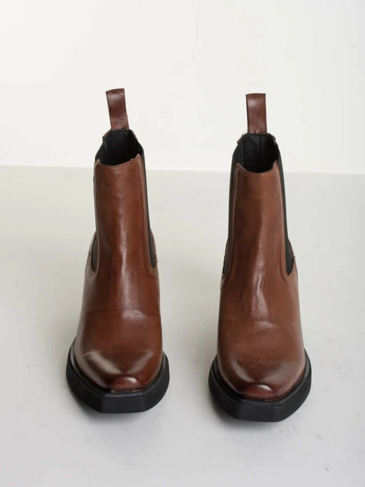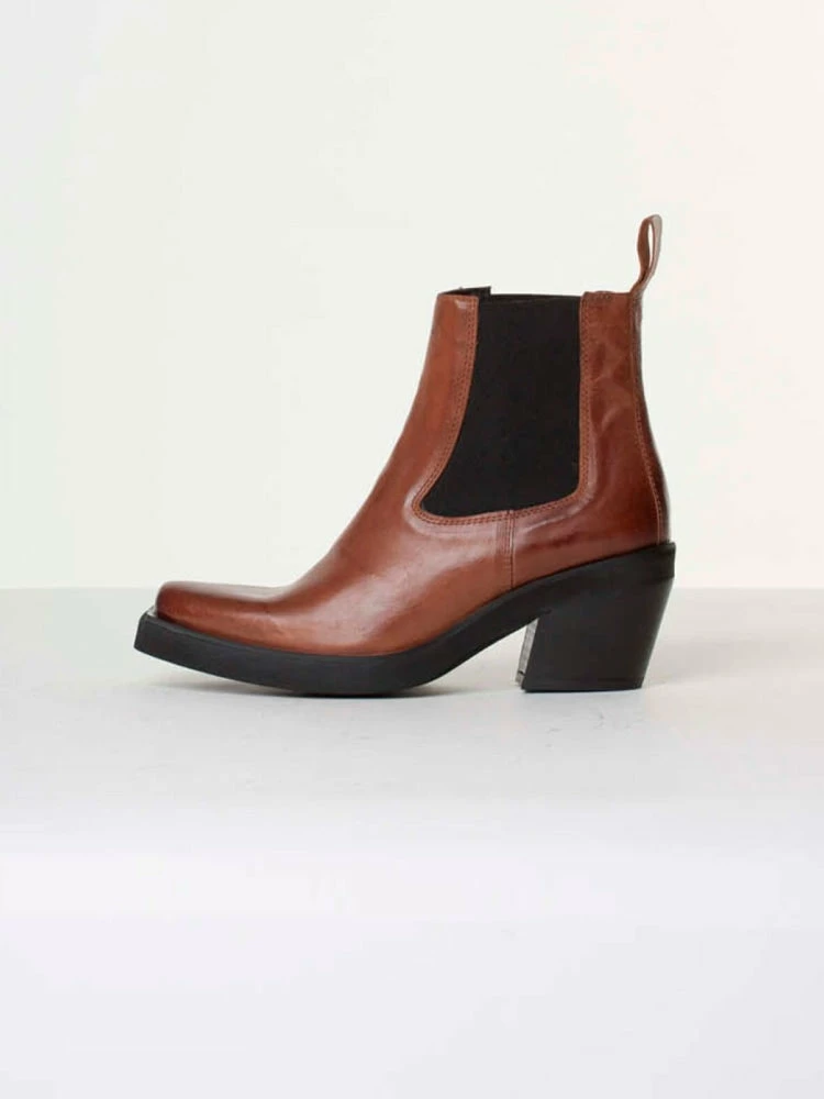 | Brand Model Product number Category Colour Material Lining Heel Height Made in | BUKELA ETNA Etna-Cara Ankle Boots Caramel 100% Leather Leather 7 cm Italy |