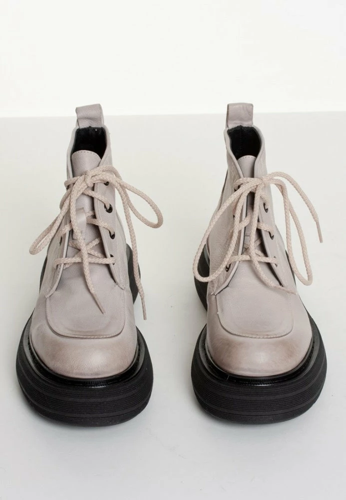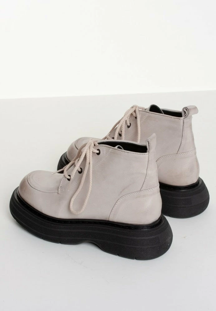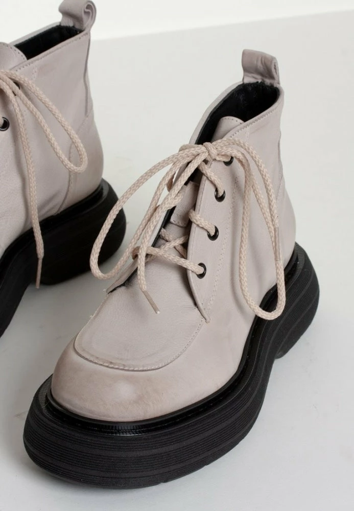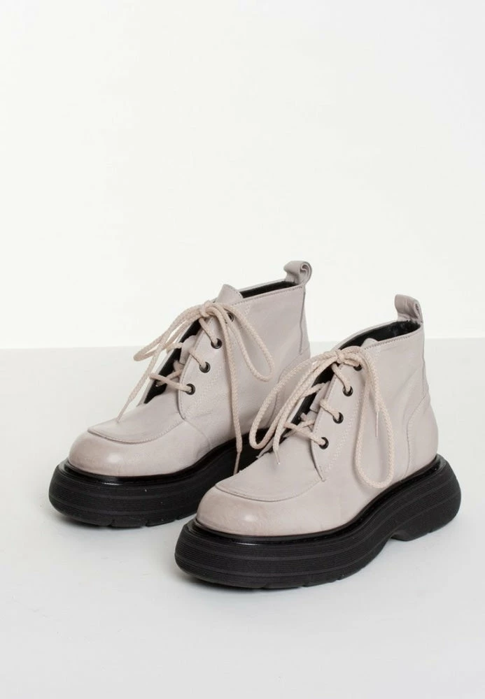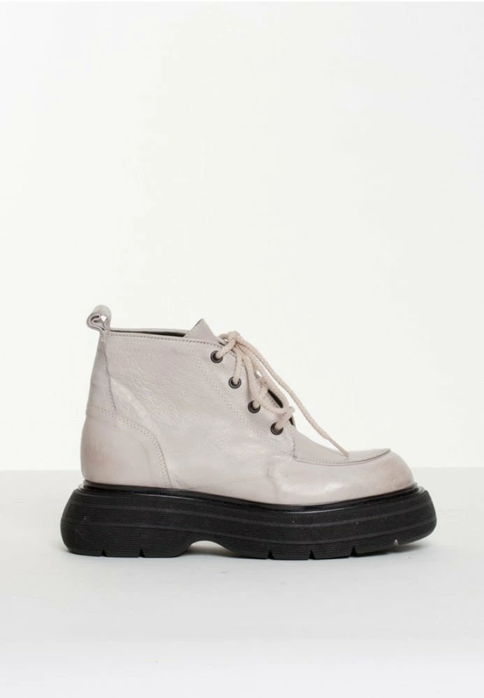 | Brand Model Product number Category Color Material Lining Flatform Height Closure Made in | BUKELA Ines INES-OFFWHITE Ankle Boots Off White 100% Calf Leather Leather 3.5 cm Lace-up Italy |