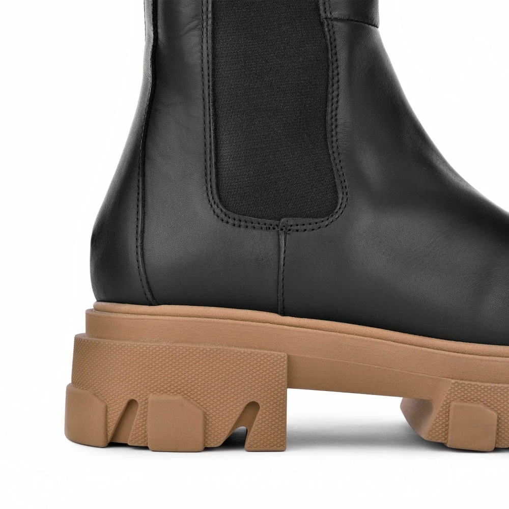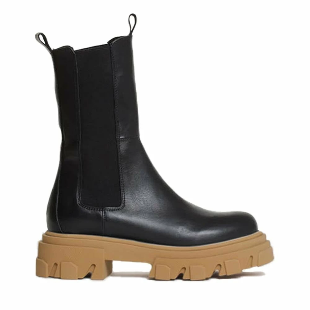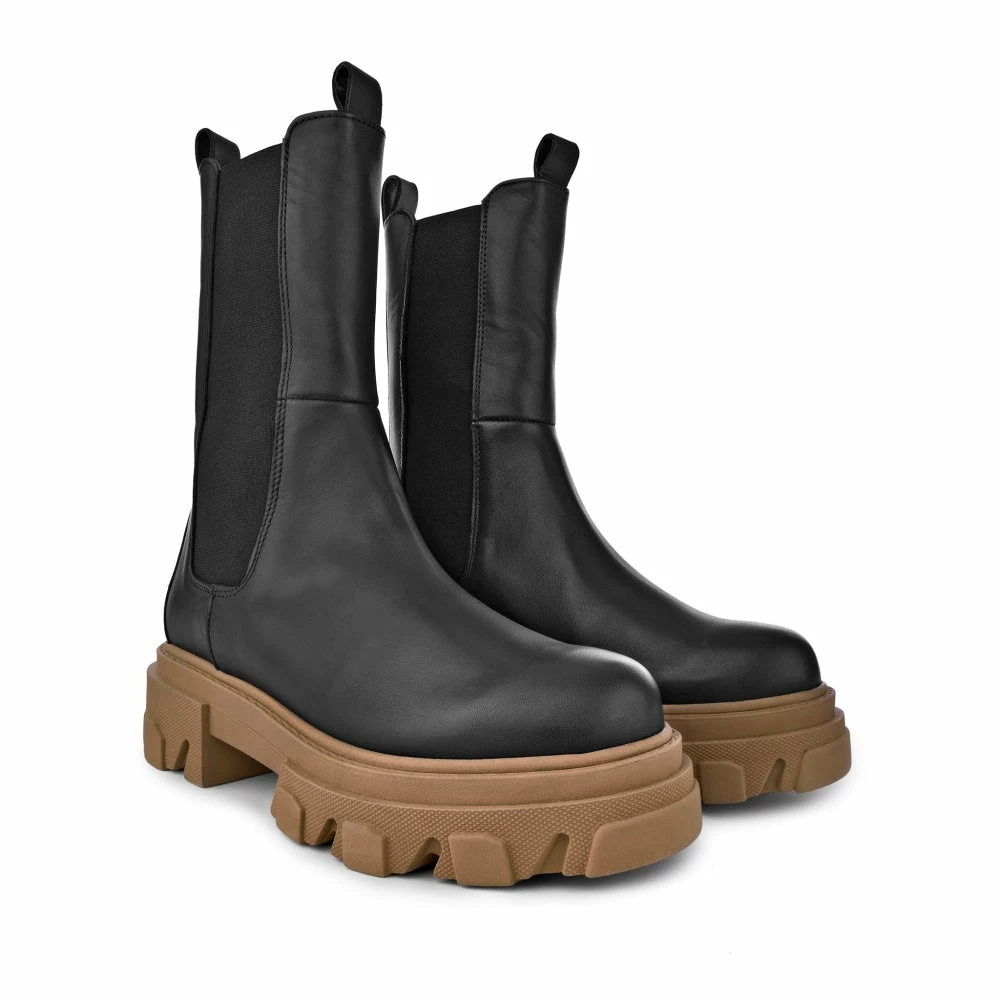 | Brand Model Product number Category Colour Material Lining Sole Details Platform Height Made in | BUKELA Ella Ellablack2 Combat Boots Black 100% Cow Leather 100% Leather 100 % Brown Rubber Side elastic inserts 5 cm Italy |