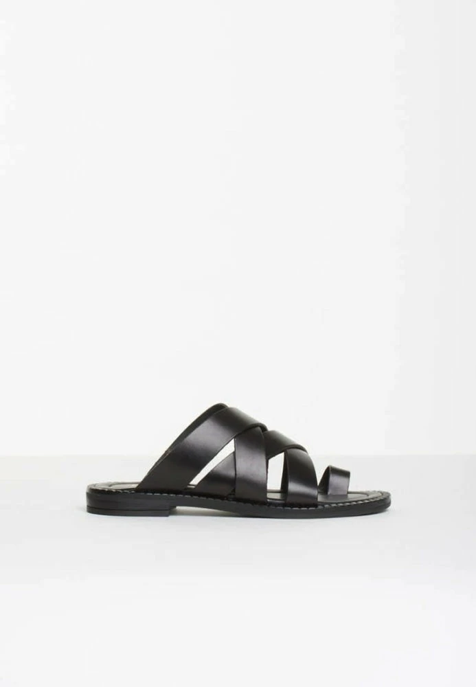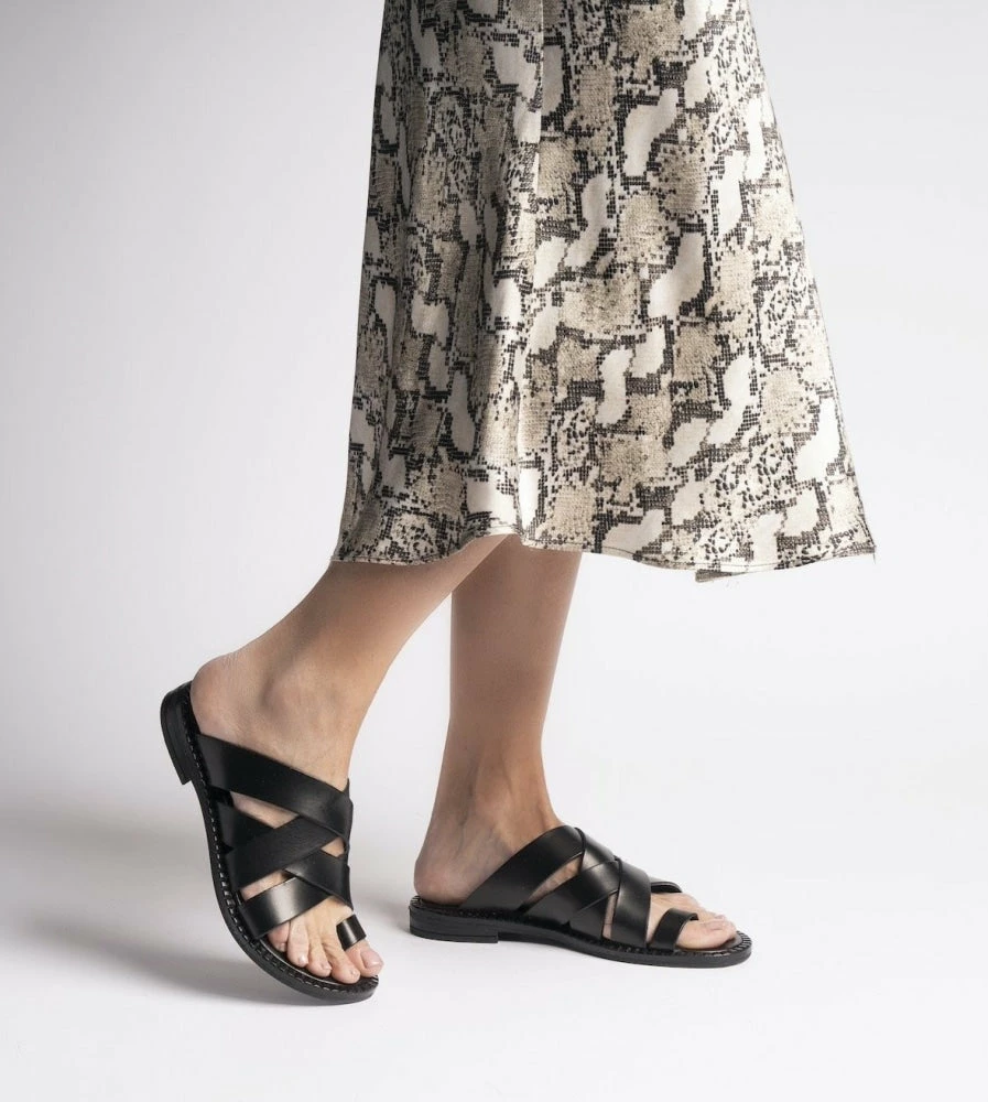 ‘Hanna’ slip-on sandals from BUKELA are a perfect choice for beach holidays and city walks. Made with original Italian leather, these black gladiator chunky sandals are the most comfortable sandals to walk in. Featuring criss-cross straps on top and a big toe strap, these black sandals fit perfectly true to their size.