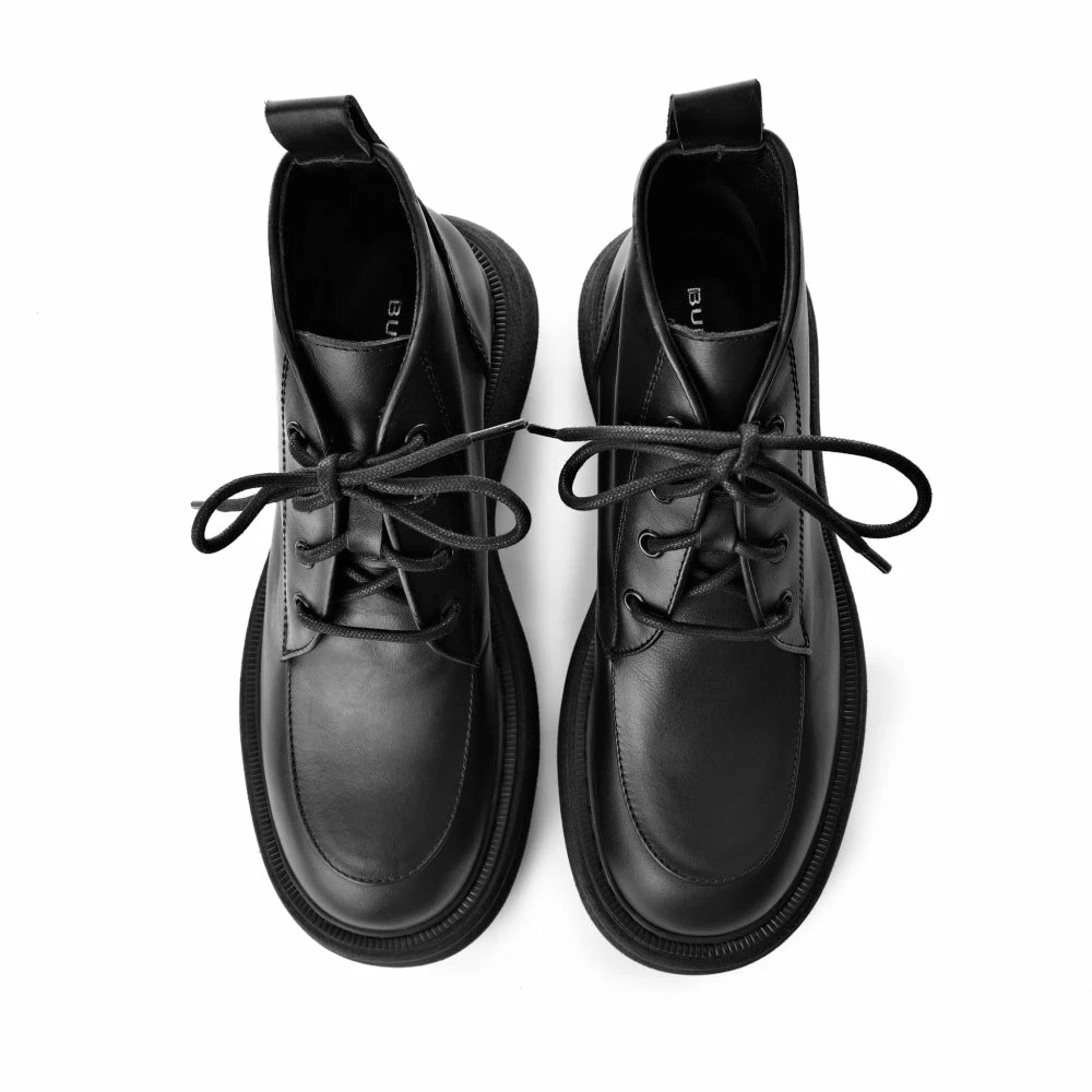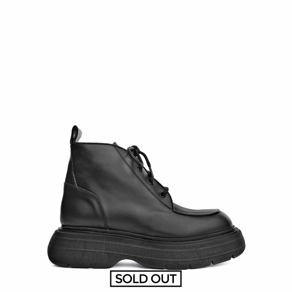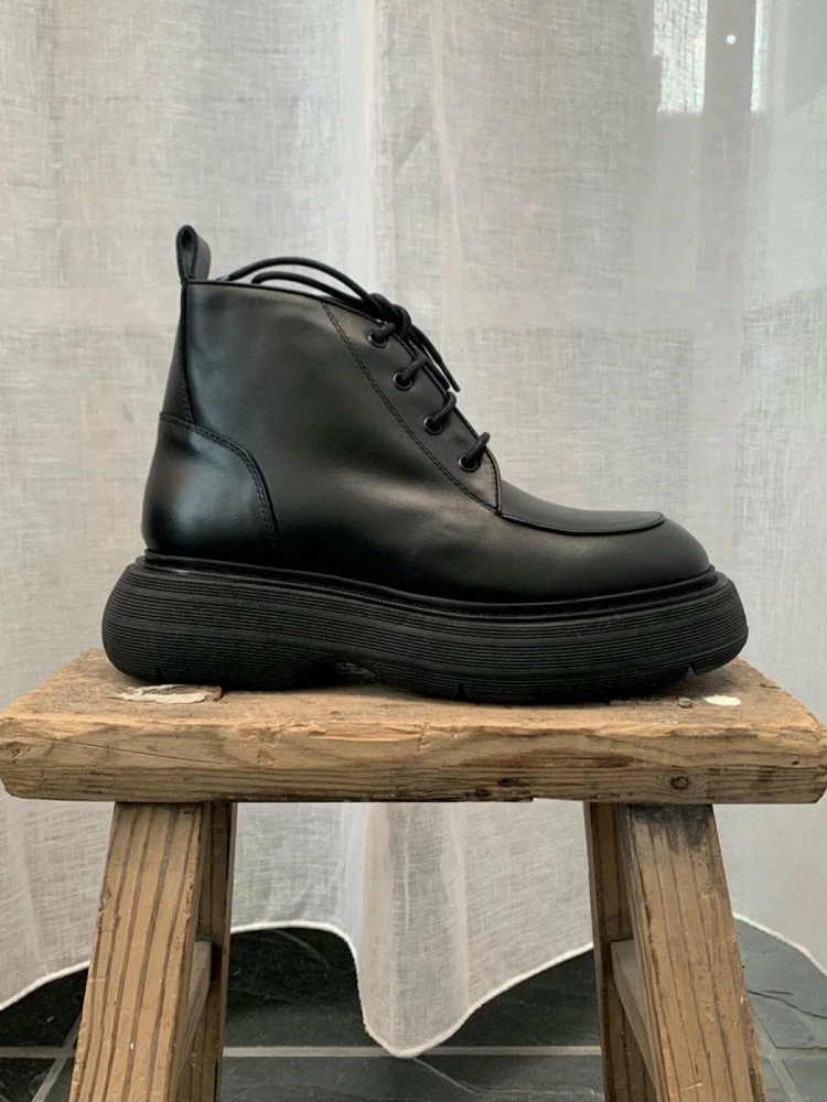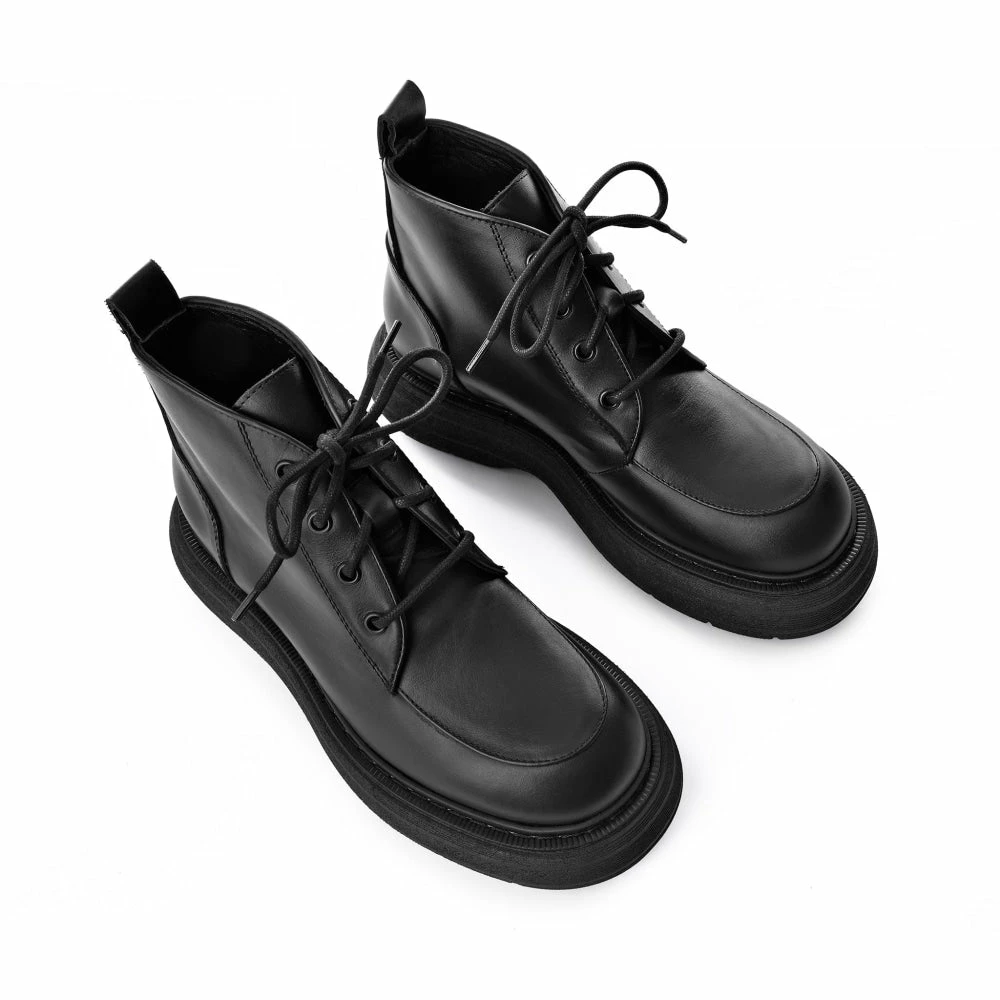 | Brand Model Product number Category Color Material Lining Flatform Height Closure Made in | BUKELA Ines Ines-Black Ankle Boots Black 100% Calf Leather Leather 3.5 cm Lace-up Italy |