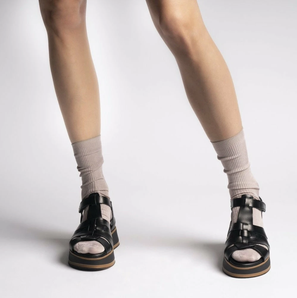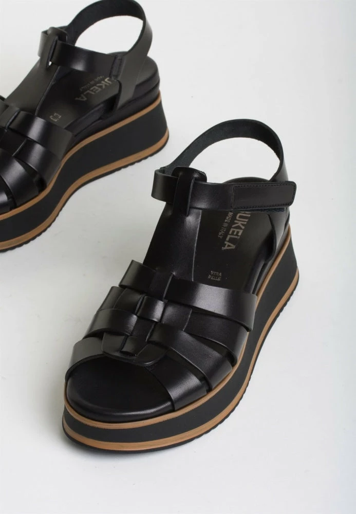 | Brand Model Product number Category Color Material Lining Platform Height Closure Made in | BUKELA Stella Stella-Black Sandals Black 100% Leather Leather 6.5 cm Velcro Straps Italy |