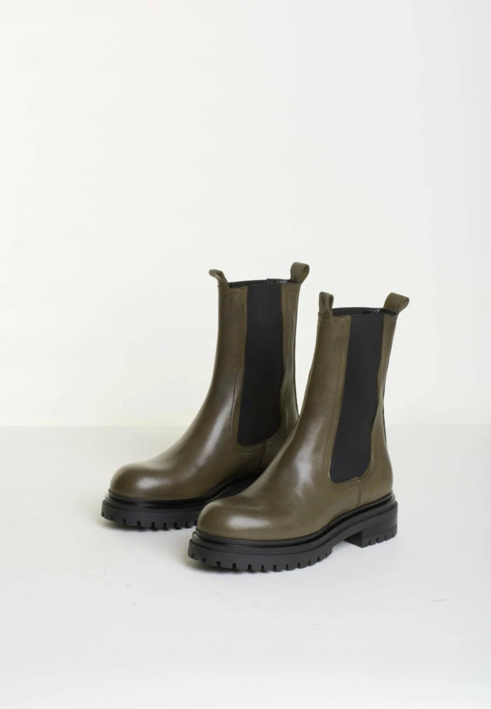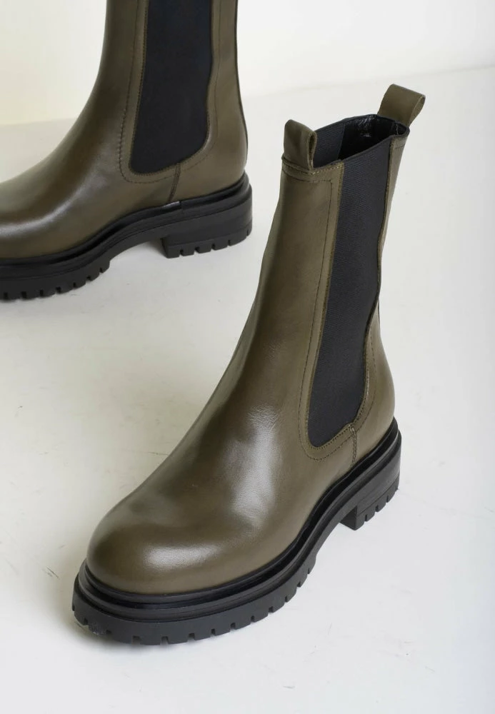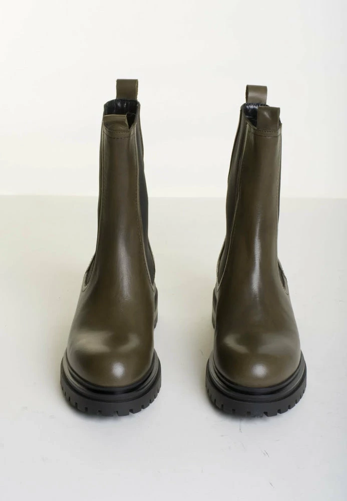 | Brand Model Product number Category Colour Material Lining Sole Details Shaft Height Platform Height Made in | BUKELA Teo Teo-Cac-21 Chelsea Boots Cactus 100% Leather 100% Leather 100 % Rubber Side elastic inserts 19 cm 4 cm Italy |