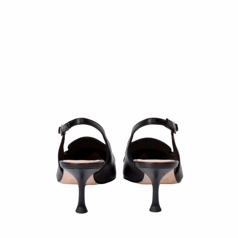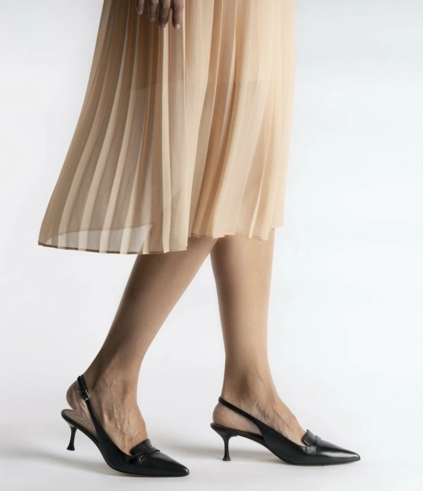 Black slingback pumps shoes are shaped to a subtle square-toe silhouette for a riff on the 1990s trend. They’re crafted in Italy from leather. Wear them beneath smart tailored separates for a timeless edit.