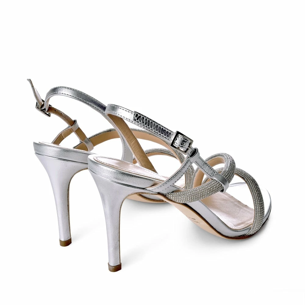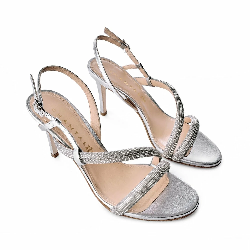 | Brand Model Product number Category Colour Material Lining Insole Outsole Heel Height Made in | CHANTAL Jolanda 1440 Sandals Silver Goat Leather 100% Italia Leather 100% Italian Soft Leather Leather sole 9 cm / 3.54 inches Hand made in Italy |