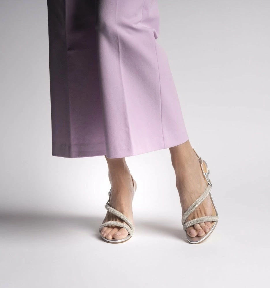 Indulge in vintage styling with Chantal’s stylish and luxe ‘JOLANDA’ sandals in silver shade. These contemporary sandals are handmade with 100% Italian goat leather and feature jewellery finishing on the top.