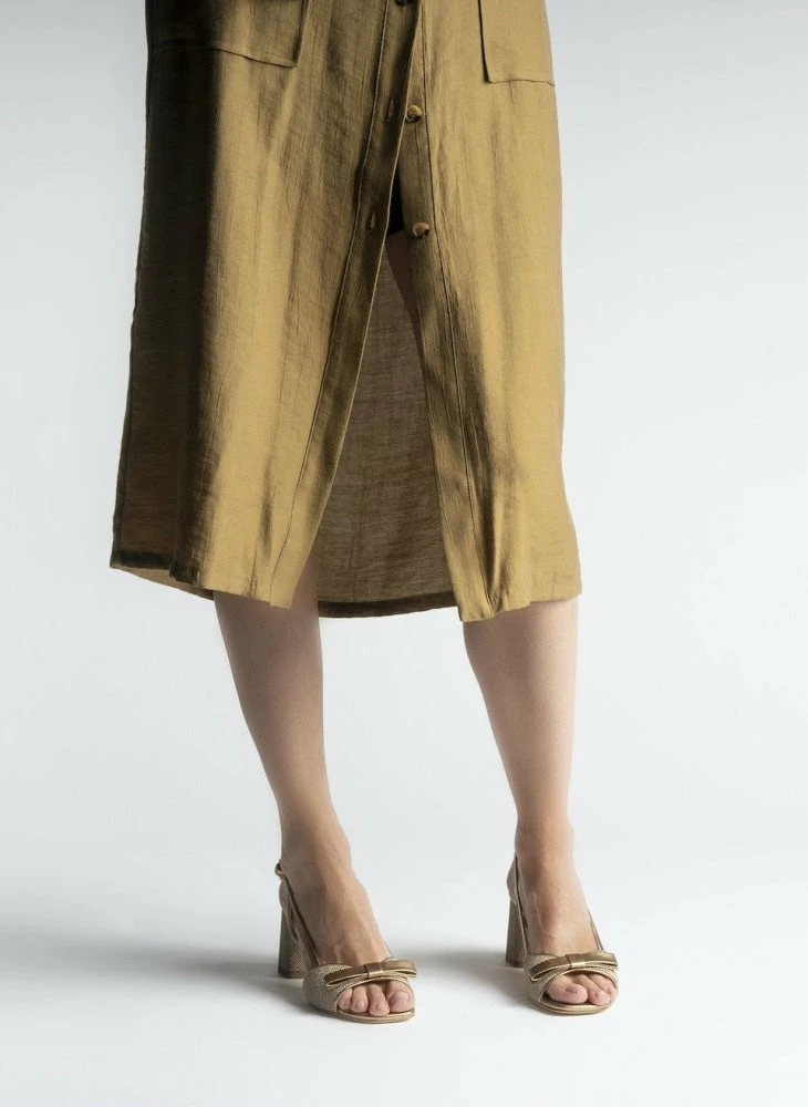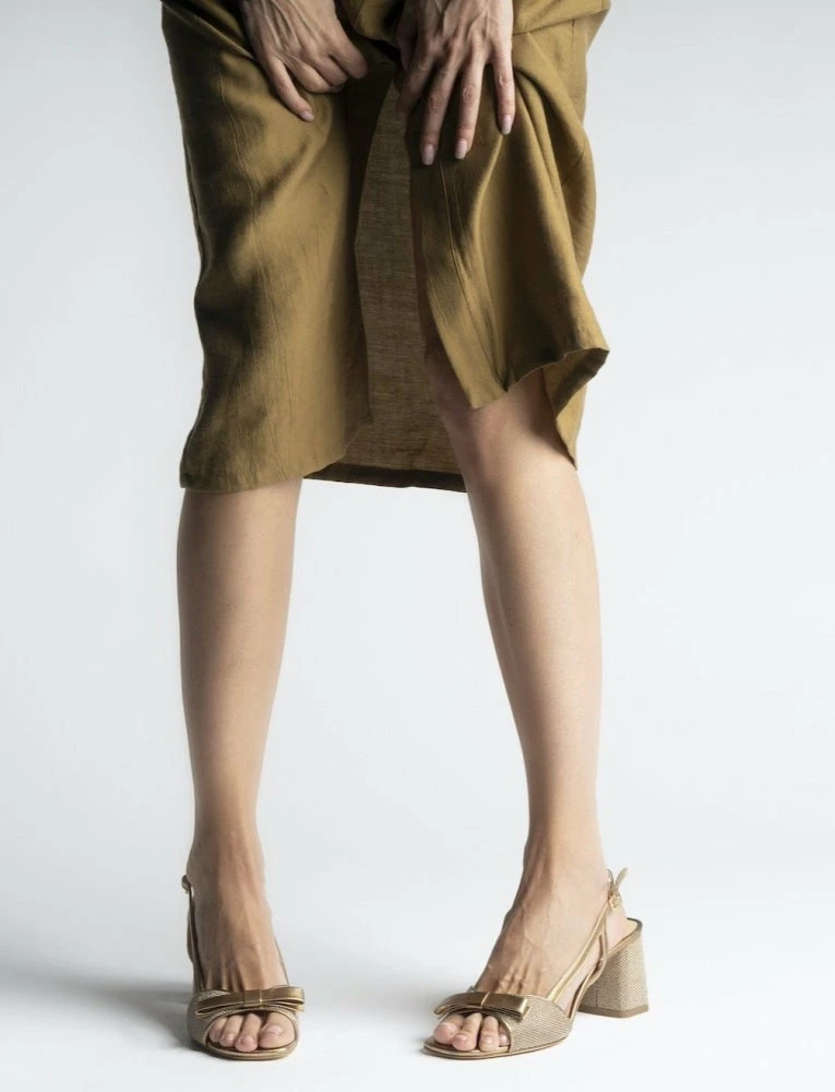 Chantal’s bronze crinkled-leather sandals are the latest addition to the  iconic collection of the brand. They’re Italian-crafted with a waved front strap adorned with the leather ribbon and set on a block heel.