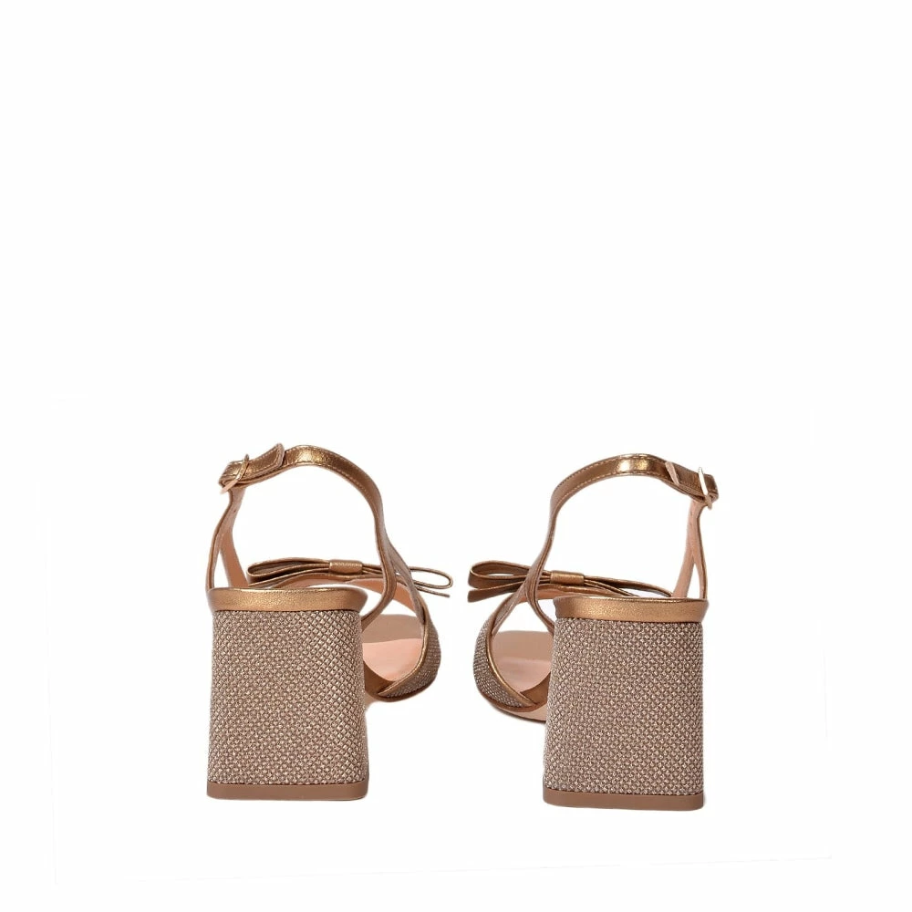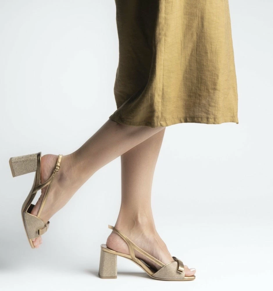 | Brand Model Product number Category Color Material Lining Heel Heigh Outsole | CHANTAL Luxor Bow 1103/Gold Heels Gold Glitter Leather Leather 7.5 cm Leather |